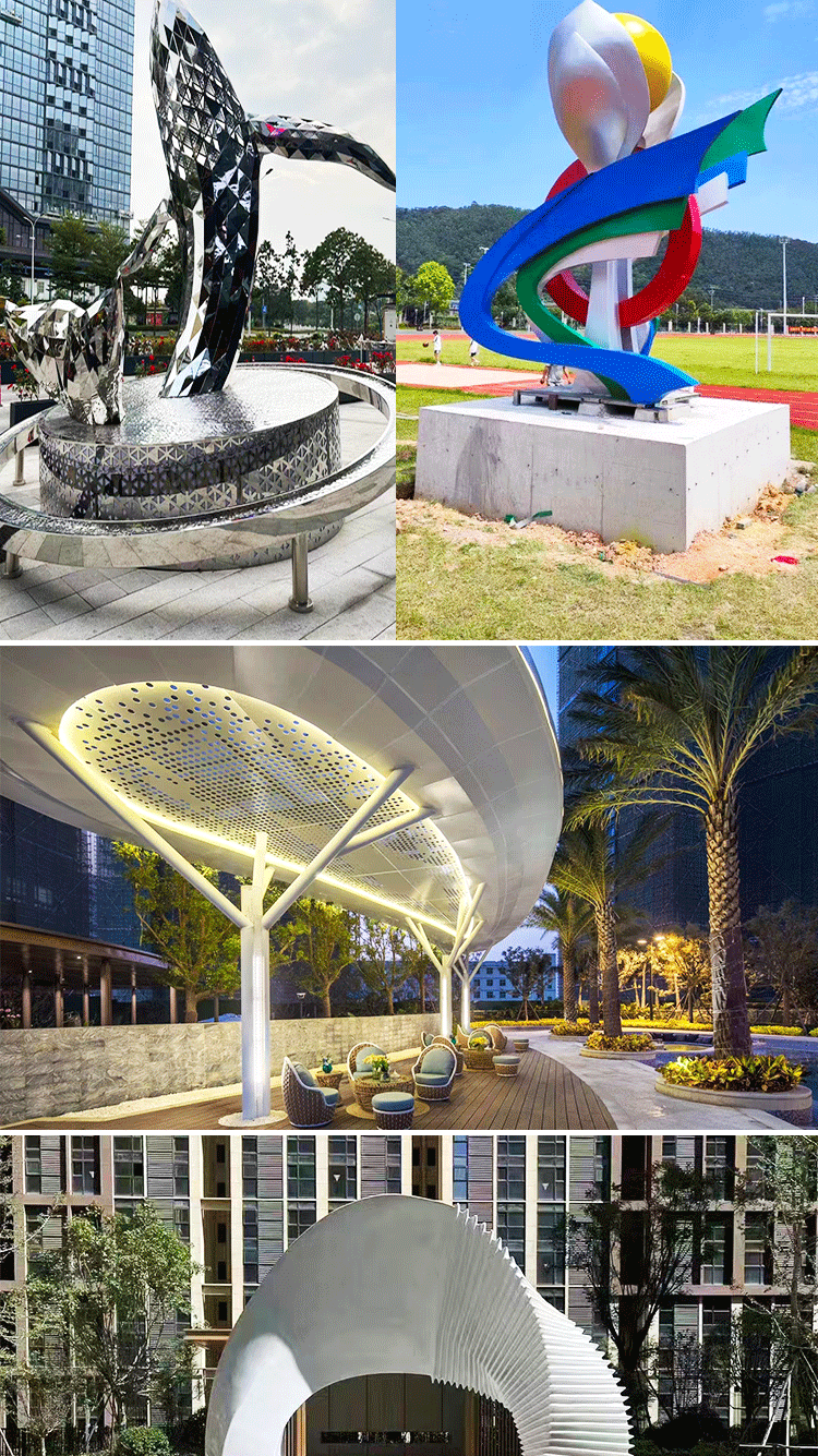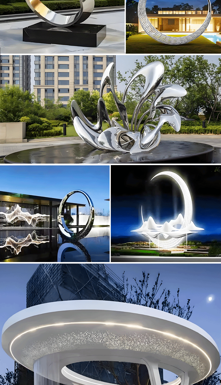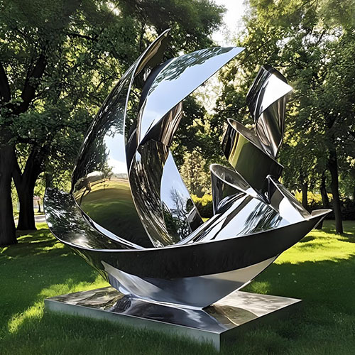 스테인레스 스틸 조경 나무 조각 맞춤형 야외 경관 상업 거리 판매 사무실 금속 예술 모양 거울 장식스토어 가기