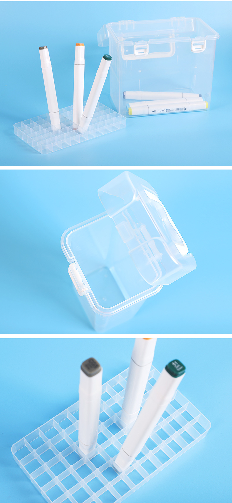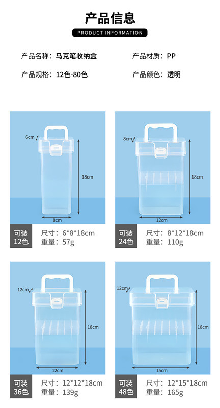 어린이와 학생을 위한 마크 펜 투명 보관 상자 낙서 그림 펜 플라스틱 상자 베이스 상자가 있는 다중 사양 보관스토어 가기