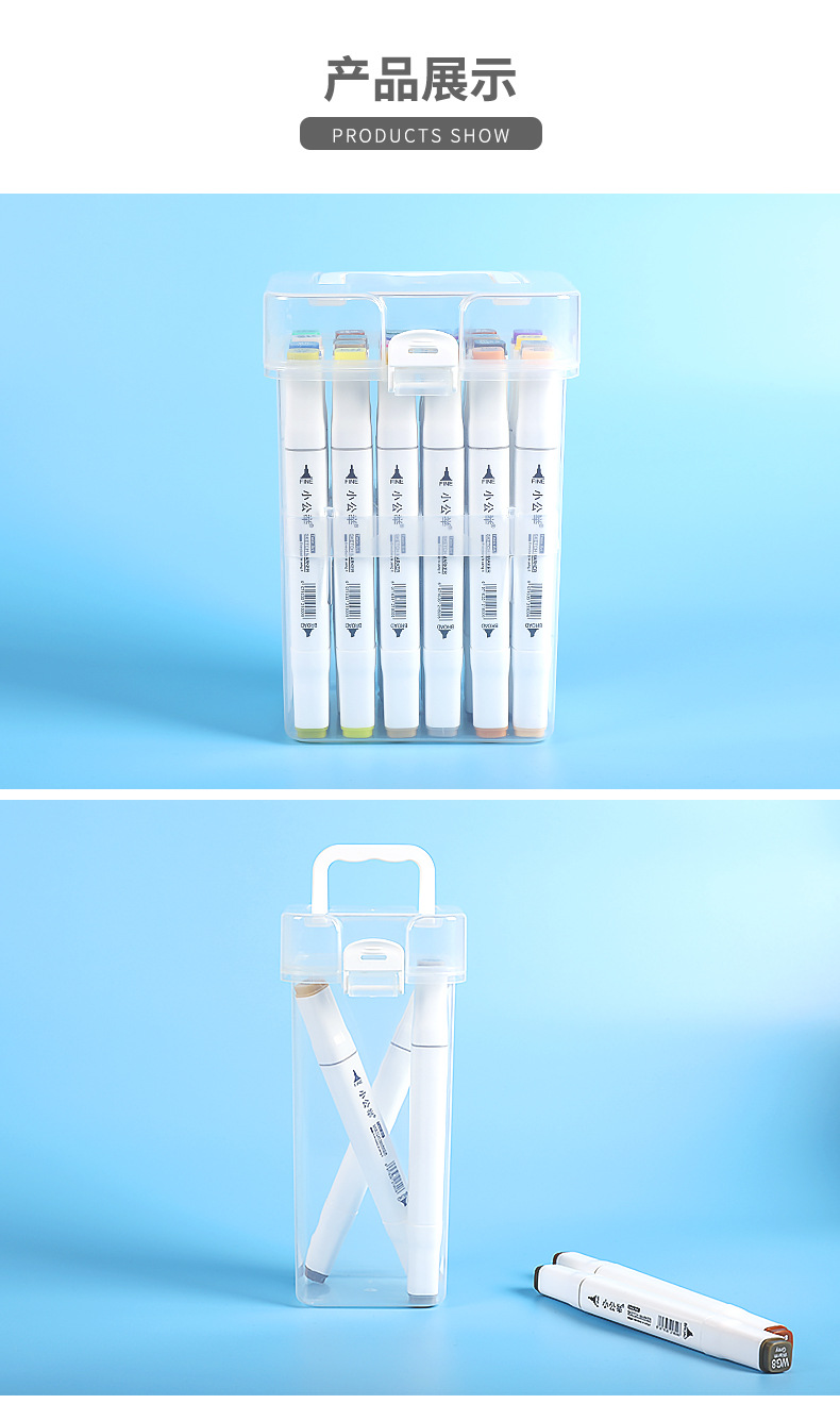 어린이와 학생을 위한 마크 펜 투명 보관 상자 낙서 그림 펜 플라스틱 상자 베이스 상자가 있는 다중 사양 보관