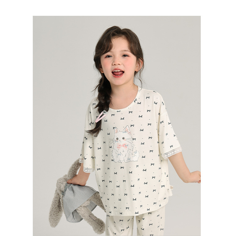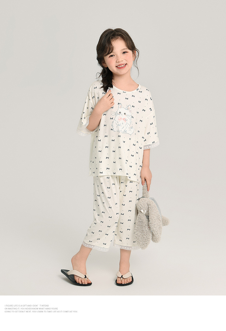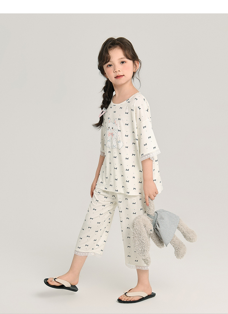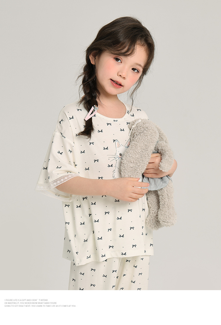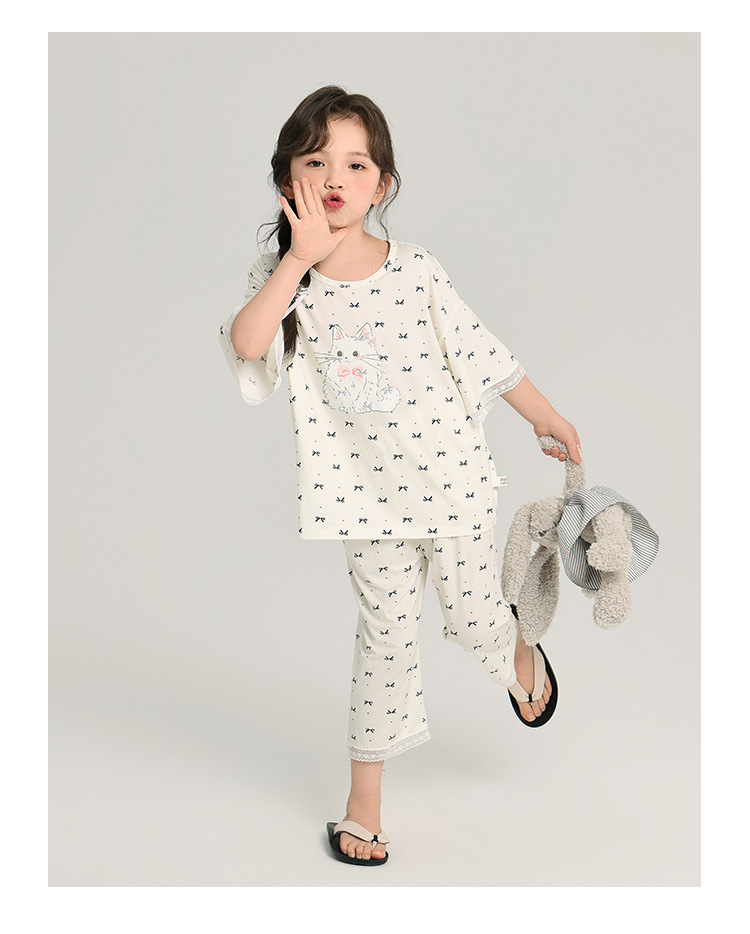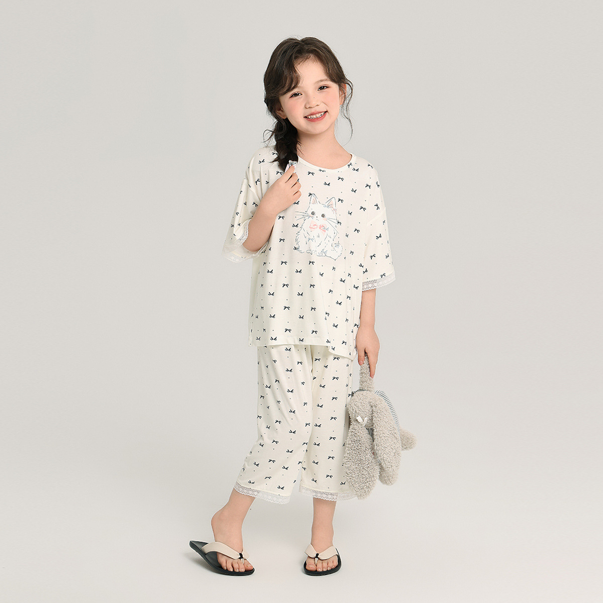 푸딩 하루 아동복 여름 어린이 캐주얼 잠옷 2025 여름 새 소녀 편안한 가정 의류 세트스토어 가기