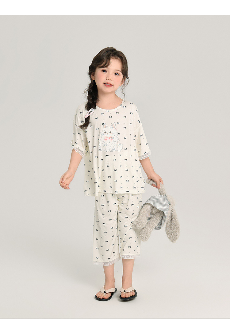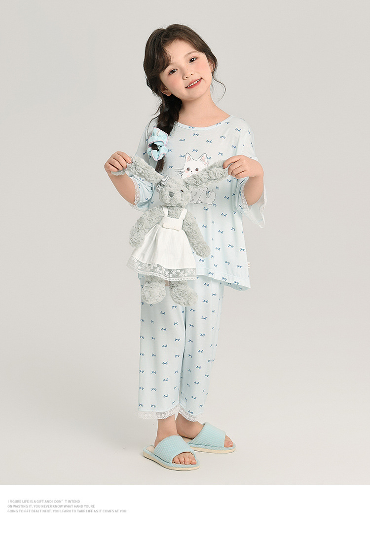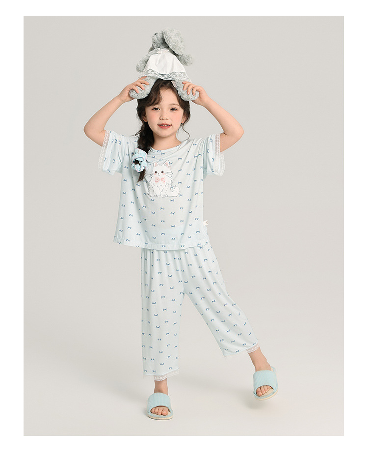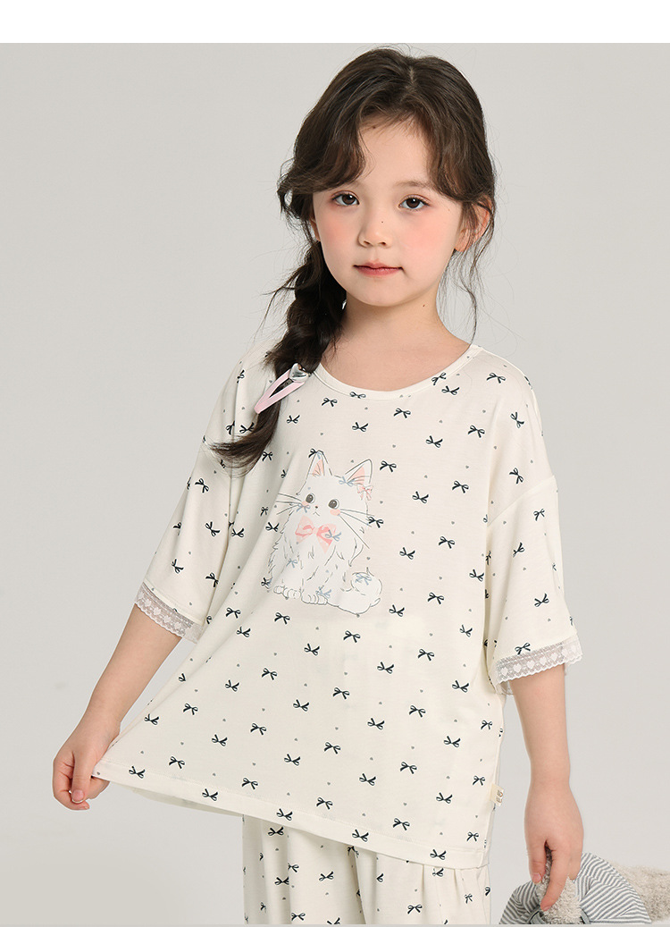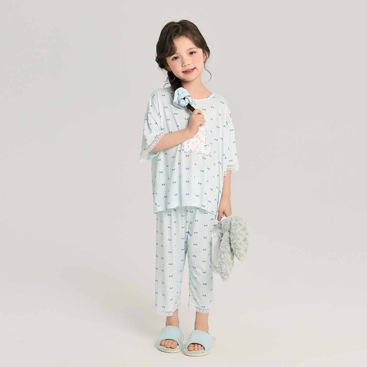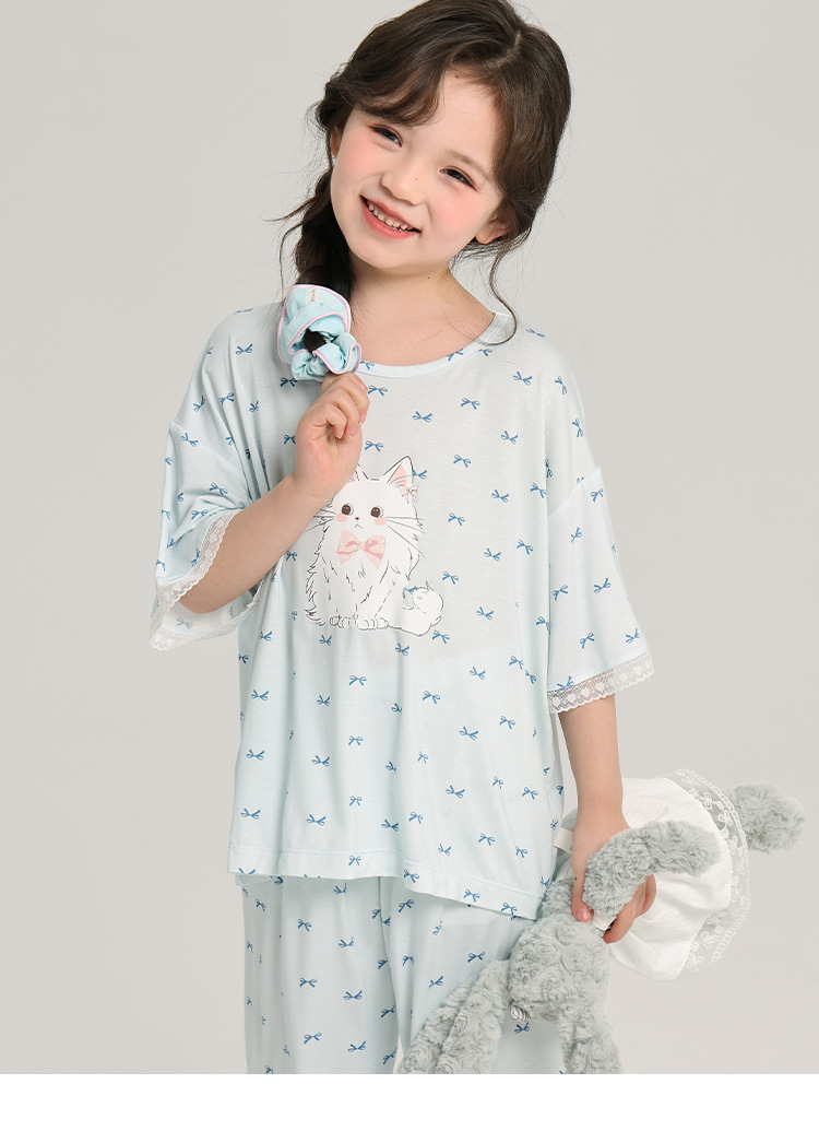 푸딩 하루 아동복 여름 어린이 캐주얼 잠옷 2025 여름 새 소녀 편안한 가정 의류 세트스토어 가기