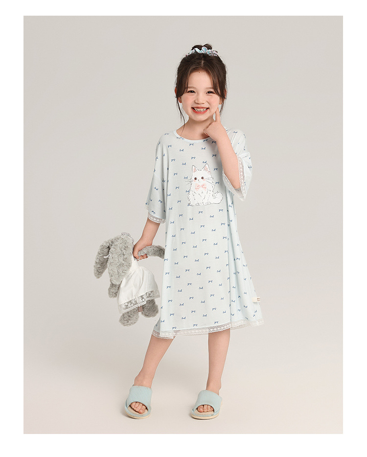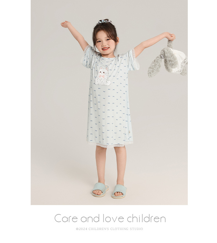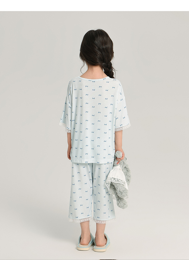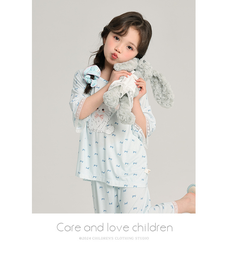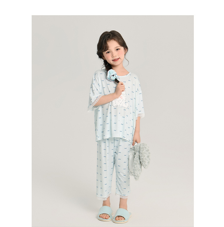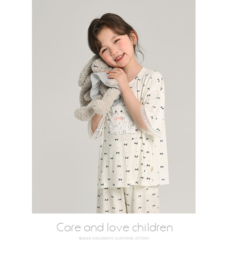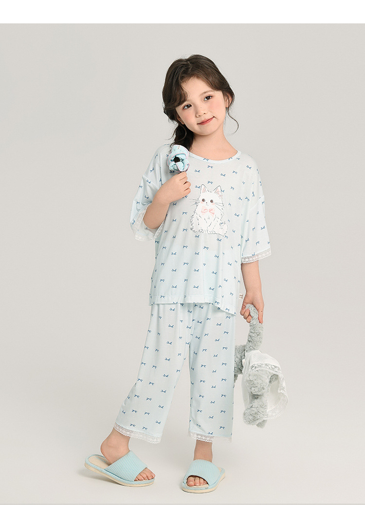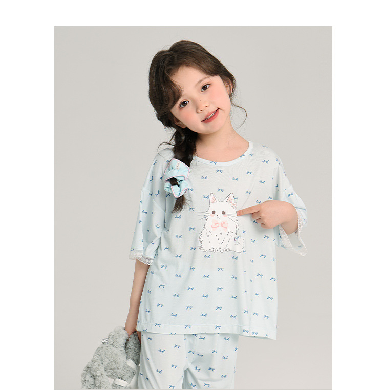 푸딩 하루 아동복 여름 어린이 캐주얼 잠옷 2025 여름 새 소녀 편안한 가정 의류 세트스토어 가기