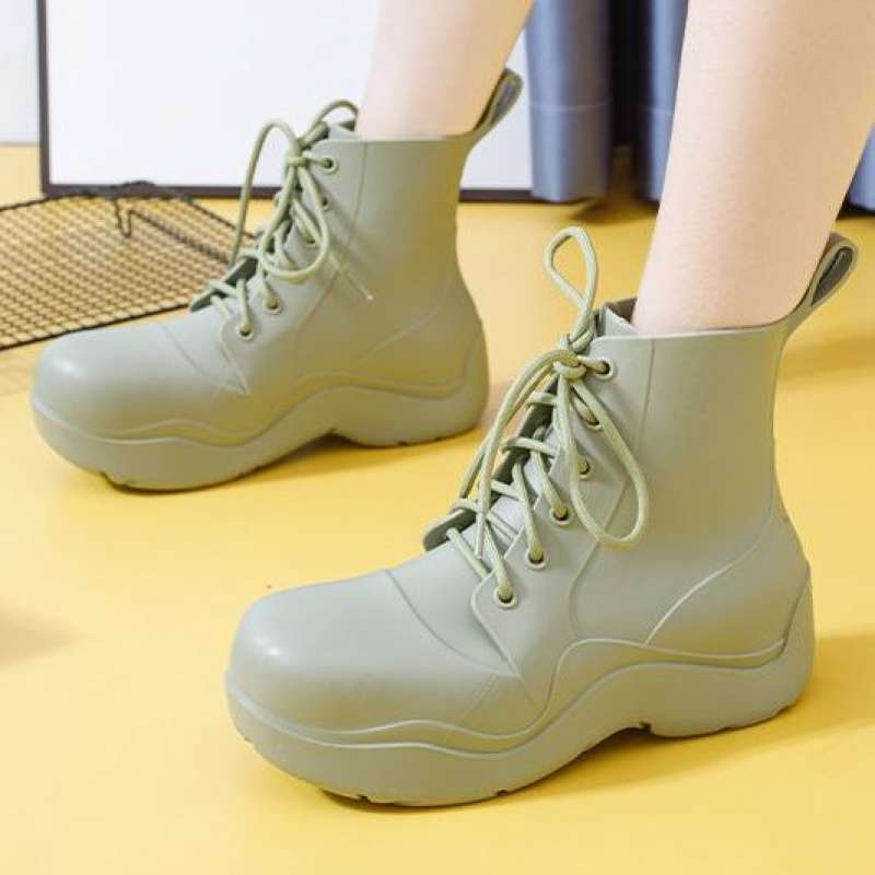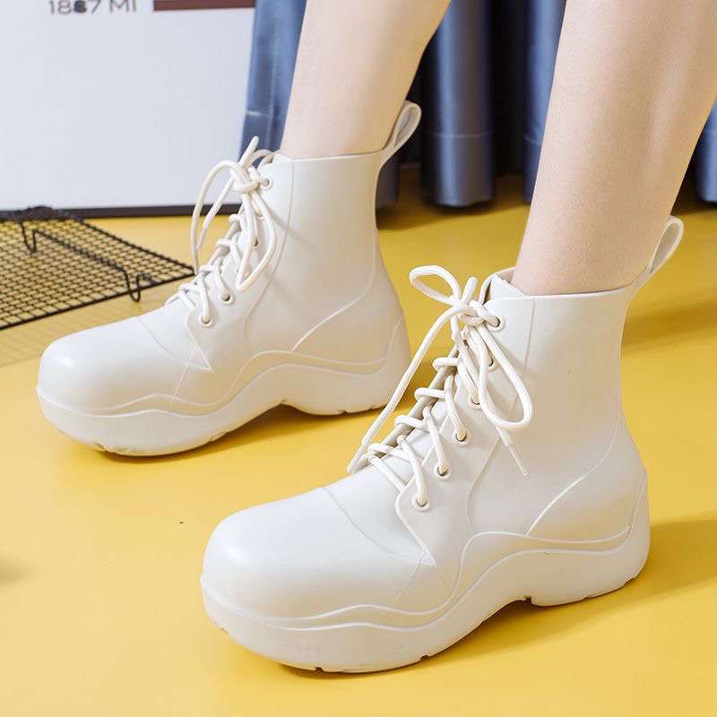 여성용 두꺼운 밑창 장화 2025 새로운 인기 가을 겨울 젤리 부츠 짧은 레이스 업 방수 미끄럼 방지 장화스토어 가기