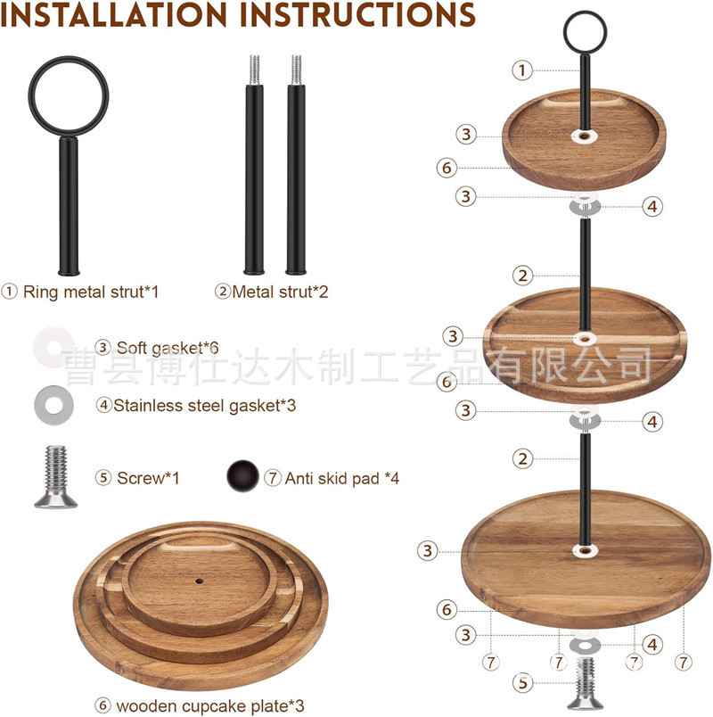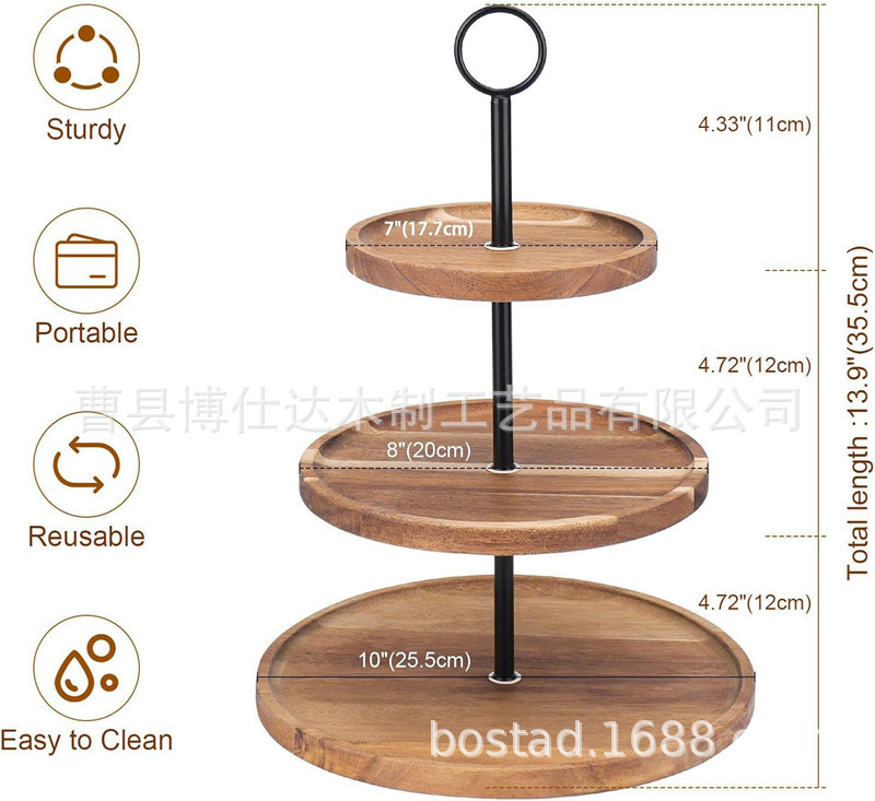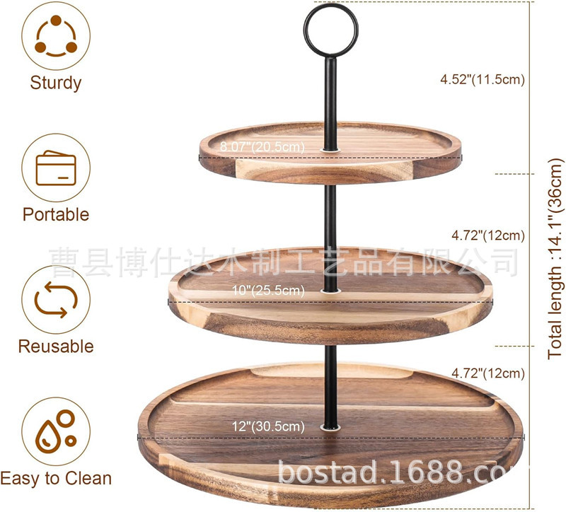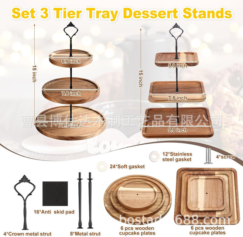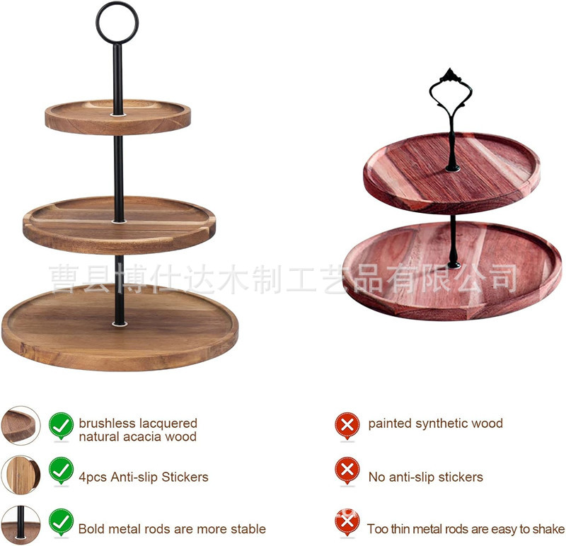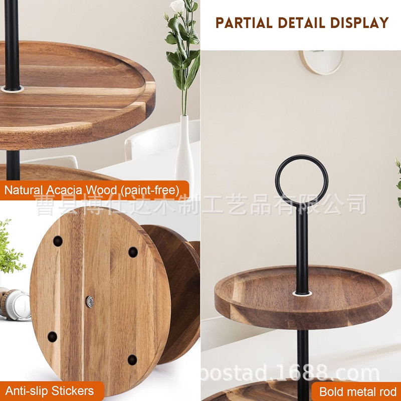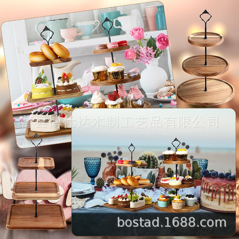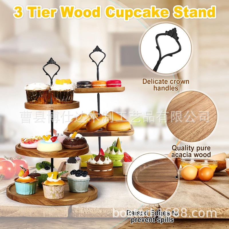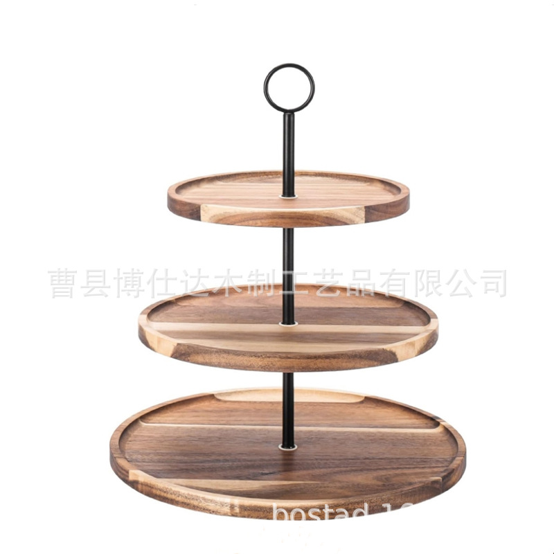 단단한 나무 과일 접시 디저트 접시 아카시아 나무 3 층 디저트 테이블 케이크 트레이 거실 커피 테이블 스낵 캔디 트레이