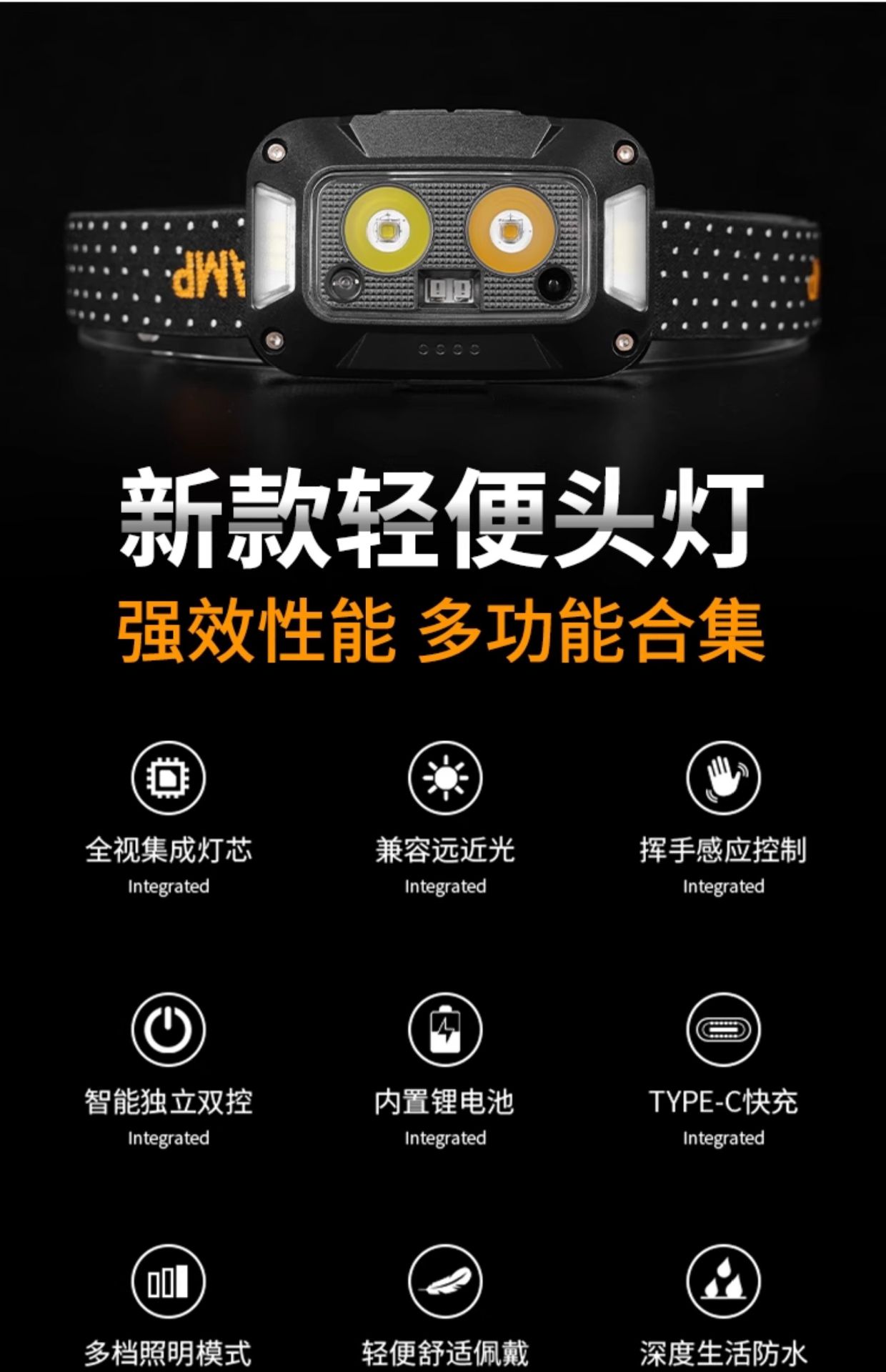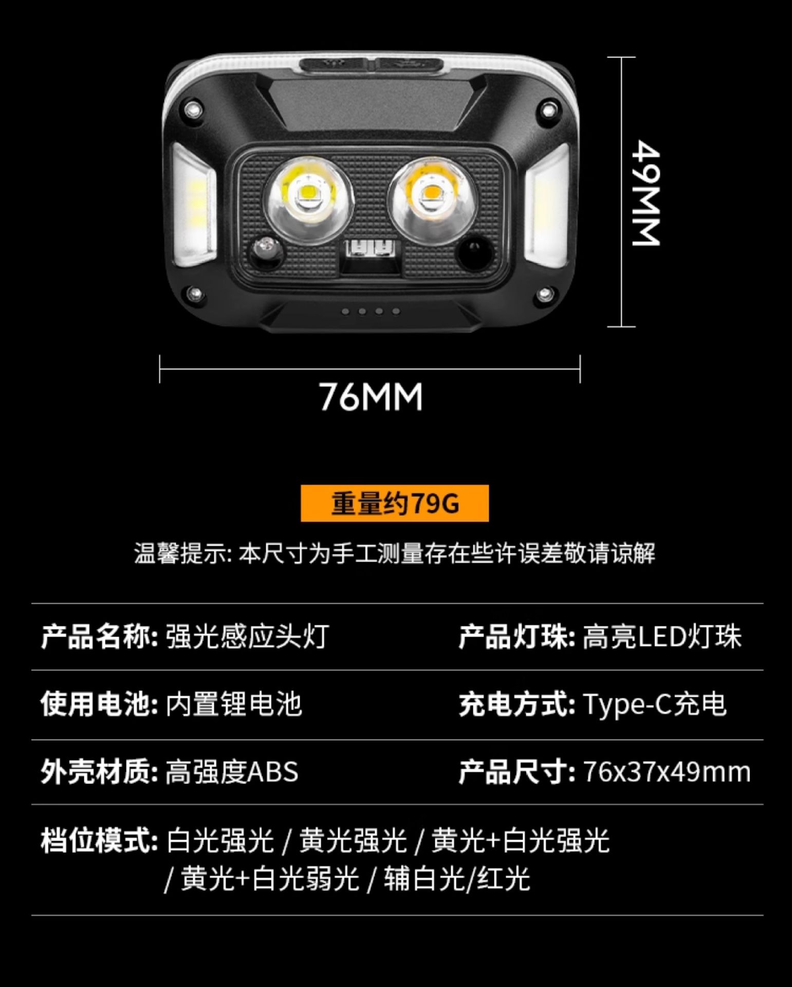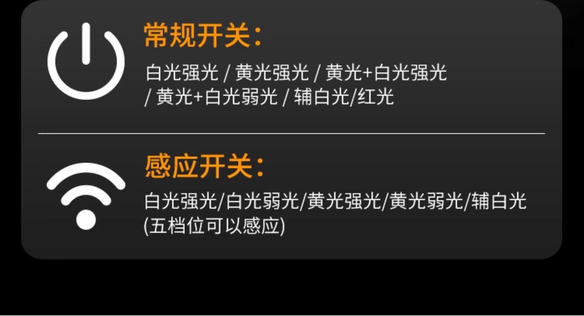 • [쿨 블랙] 노란색과 흰색 이중 광원 - 파동 센서 - 배터리 수명 12H