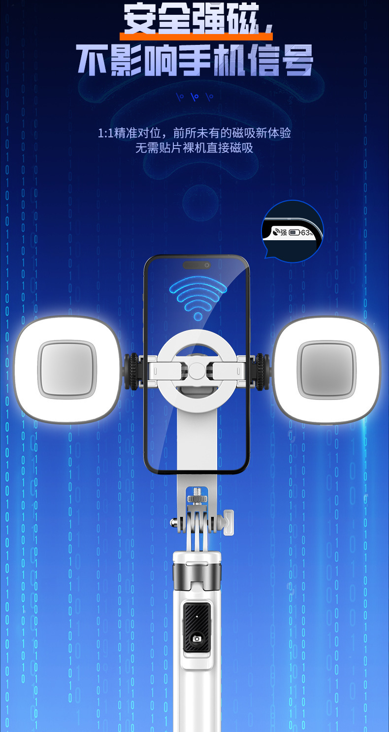국경 간 핫 P135 셀카 스틱 마그네틱 4 개 휴대 전화 브래킷 블루투스 원격 제어 셀카 스틱 플러스 채우기 조명스토어 가기