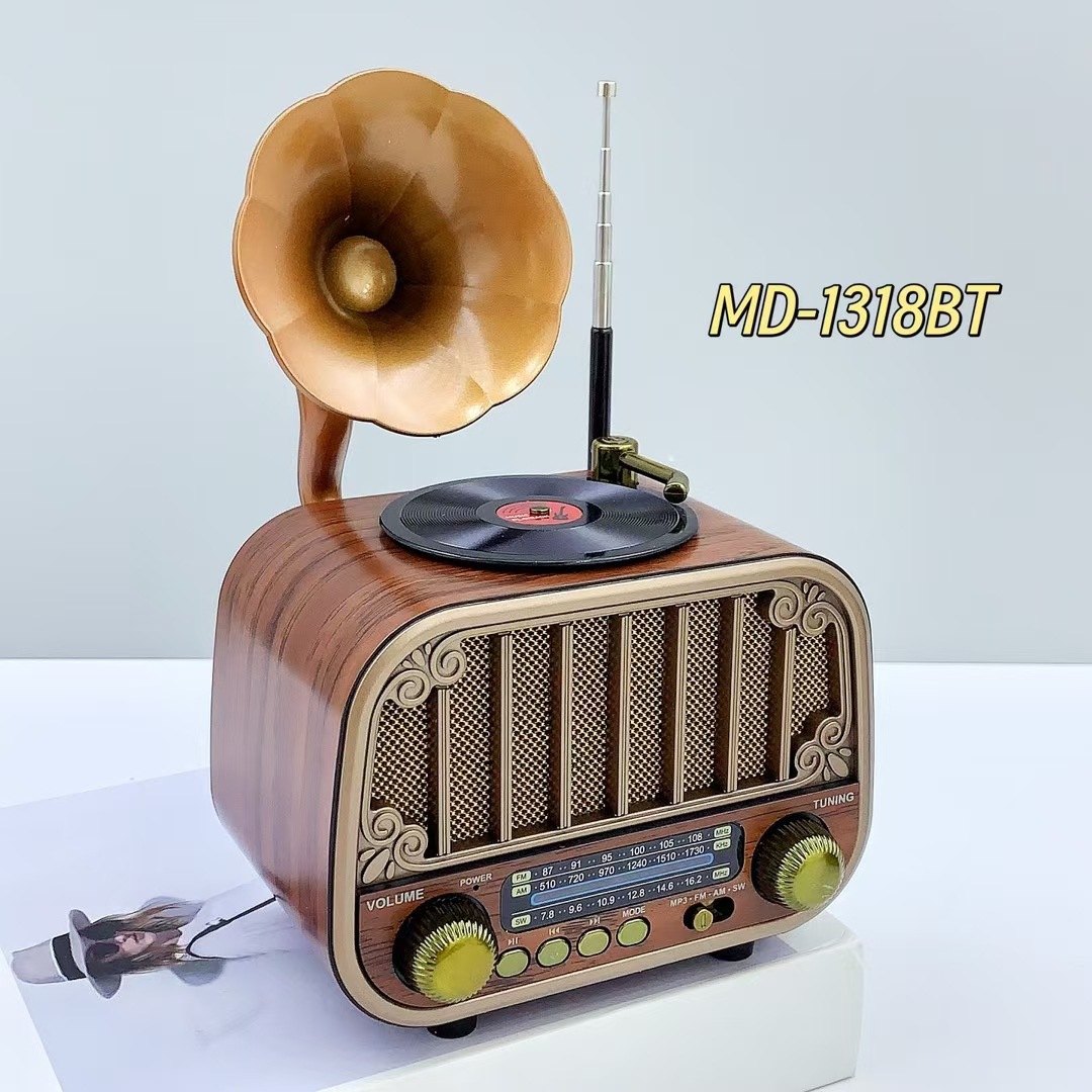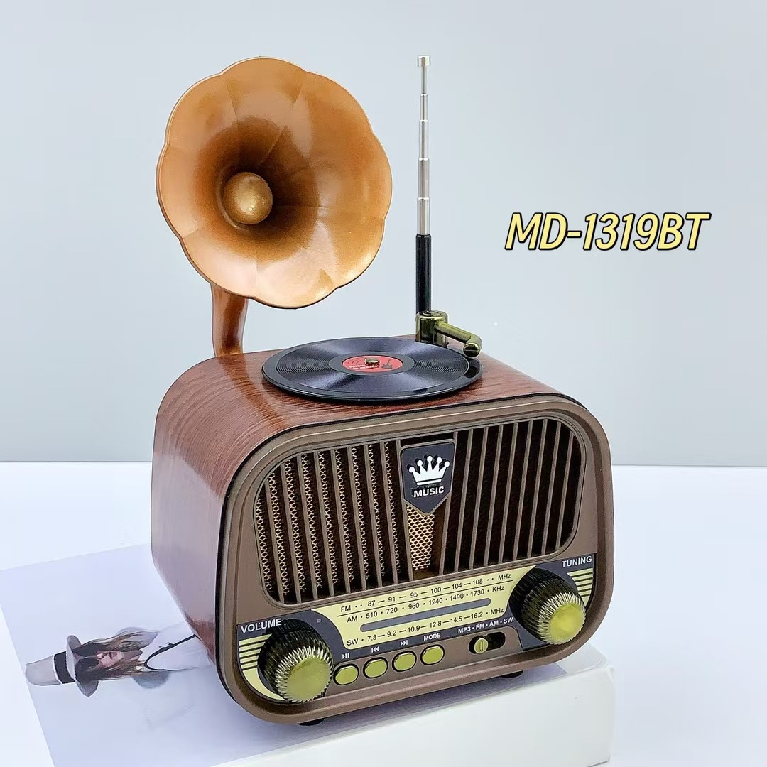 레트로 새로운 크리 에이 티브 데스크탑 장식품 블루투스 스피커 휴대용 멀티미디어 FM/AM/SW 야외 안테나 라디오스토어 가기