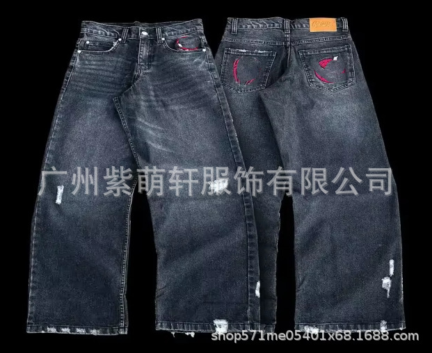 2025 스트리트 스타일 트렌디 힙합 만화 거미 자수 루즈 스케이트 루즈 레트로 바지 청바지스토어 가기