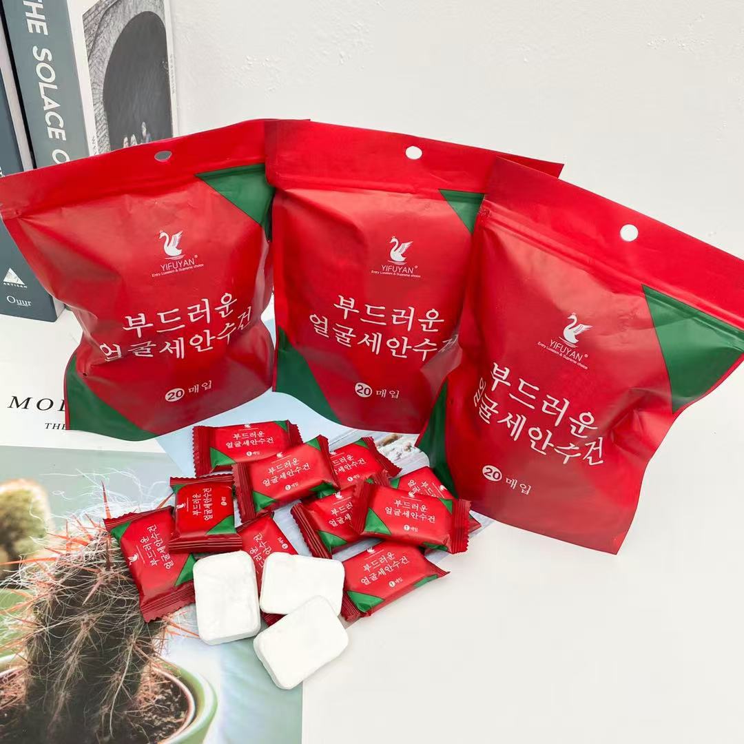 일회용 압축 수건 개별 포장 빨간색 포장 순면 클렌징 수건 휴대용 여행용 압축 얼굴 수건