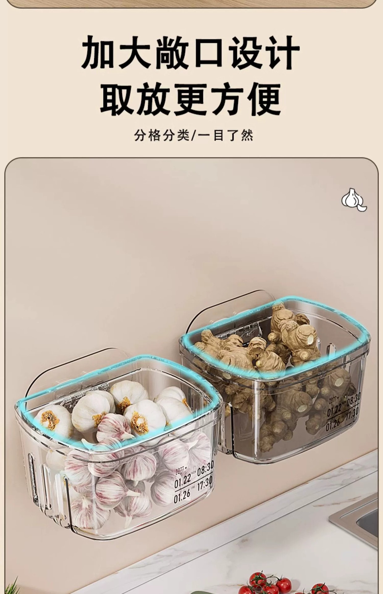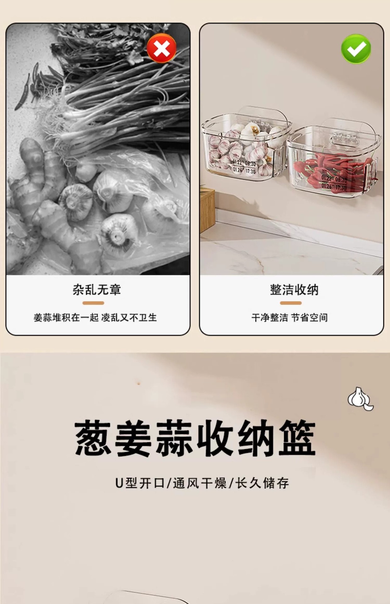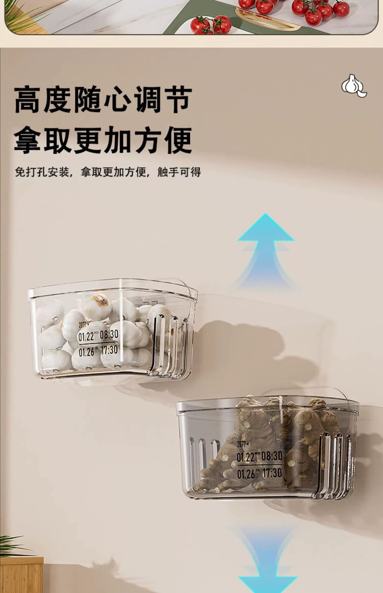 양파, 생강, 마늘 보관함, 주방 마늘 벽걸이 보관 바구니, 생강 마늘 보관함, 다기능 생강 바구니 유물