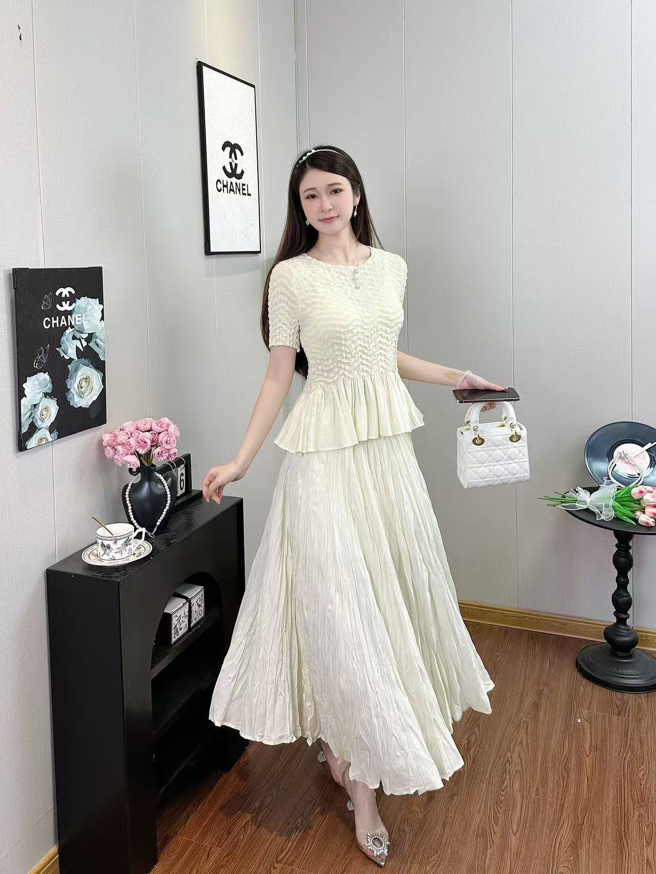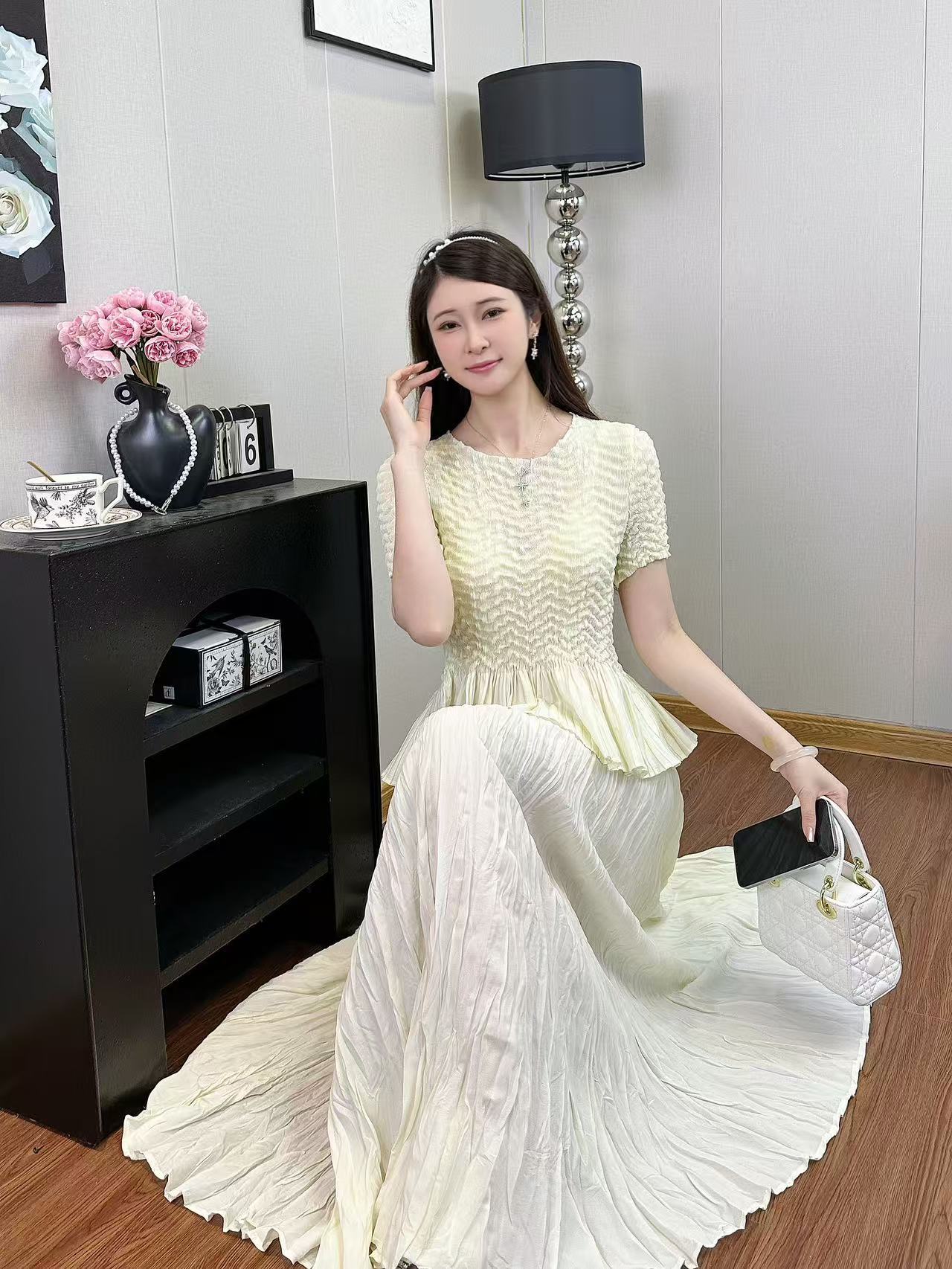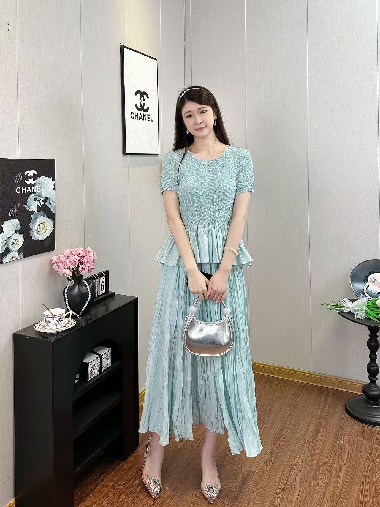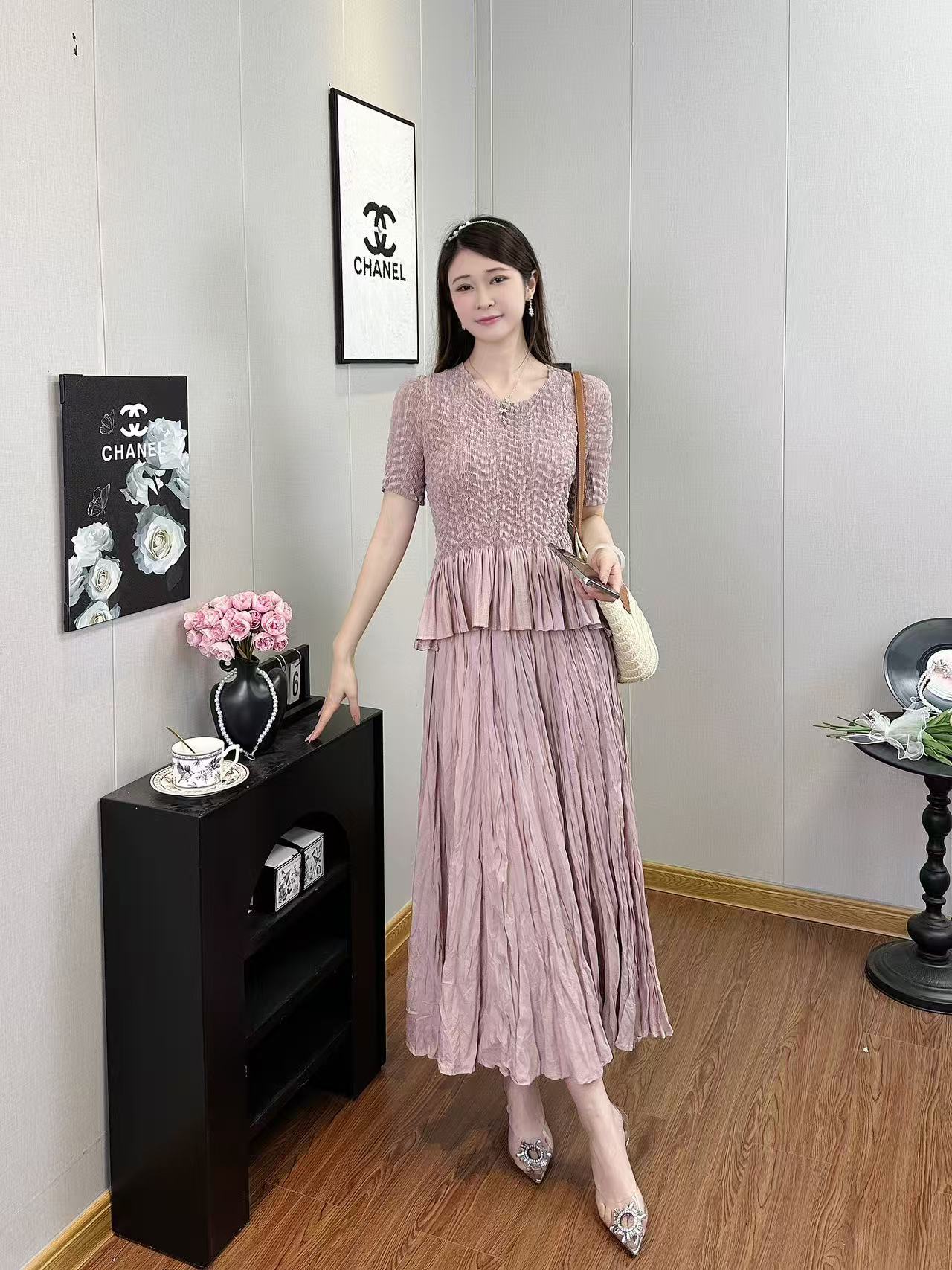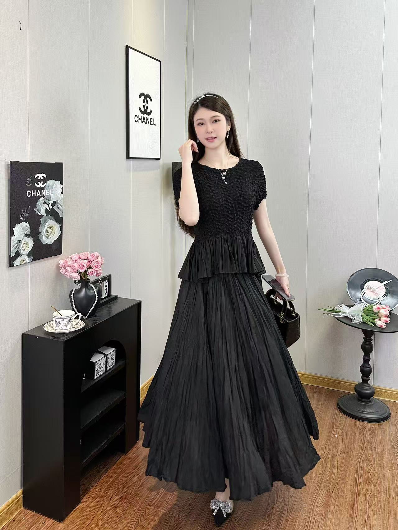 미야케 하이엔드 디자인 플리츠 티셔츠 여성용 빅 스커트 투피스 세트 루즈한 신작 플러스 사이즈 여성 패션 트렌드