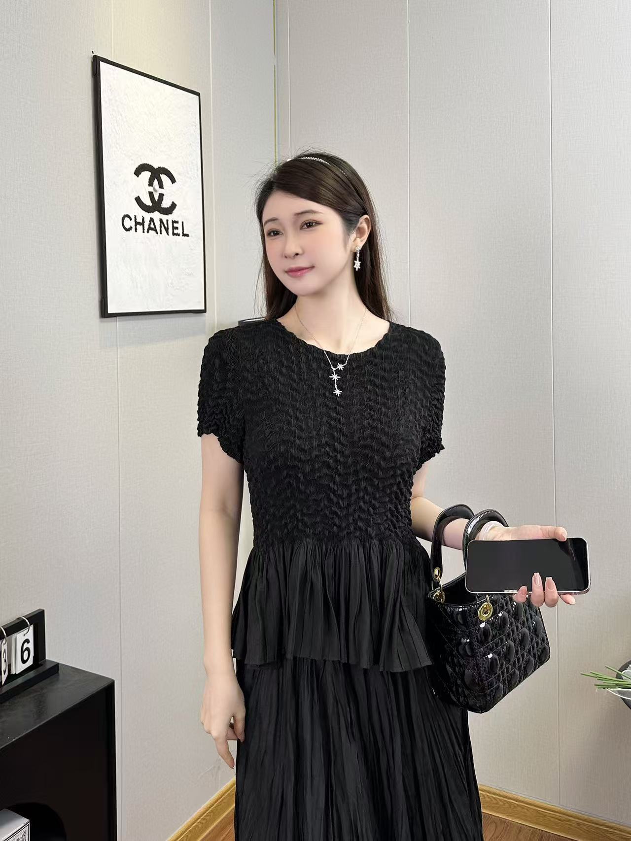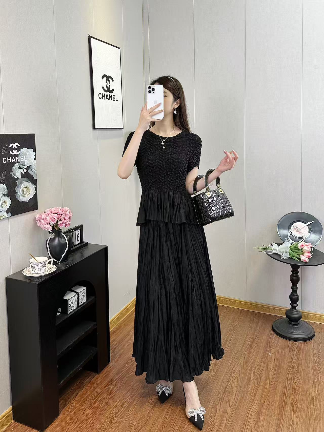 미야케 하이엔드 디자인 플리츠 티셔츠 여성용 빅 스커트 투피스 세트 루즈한 신작 플러스 사이즈 여성 패션 트렌드스토어 가기