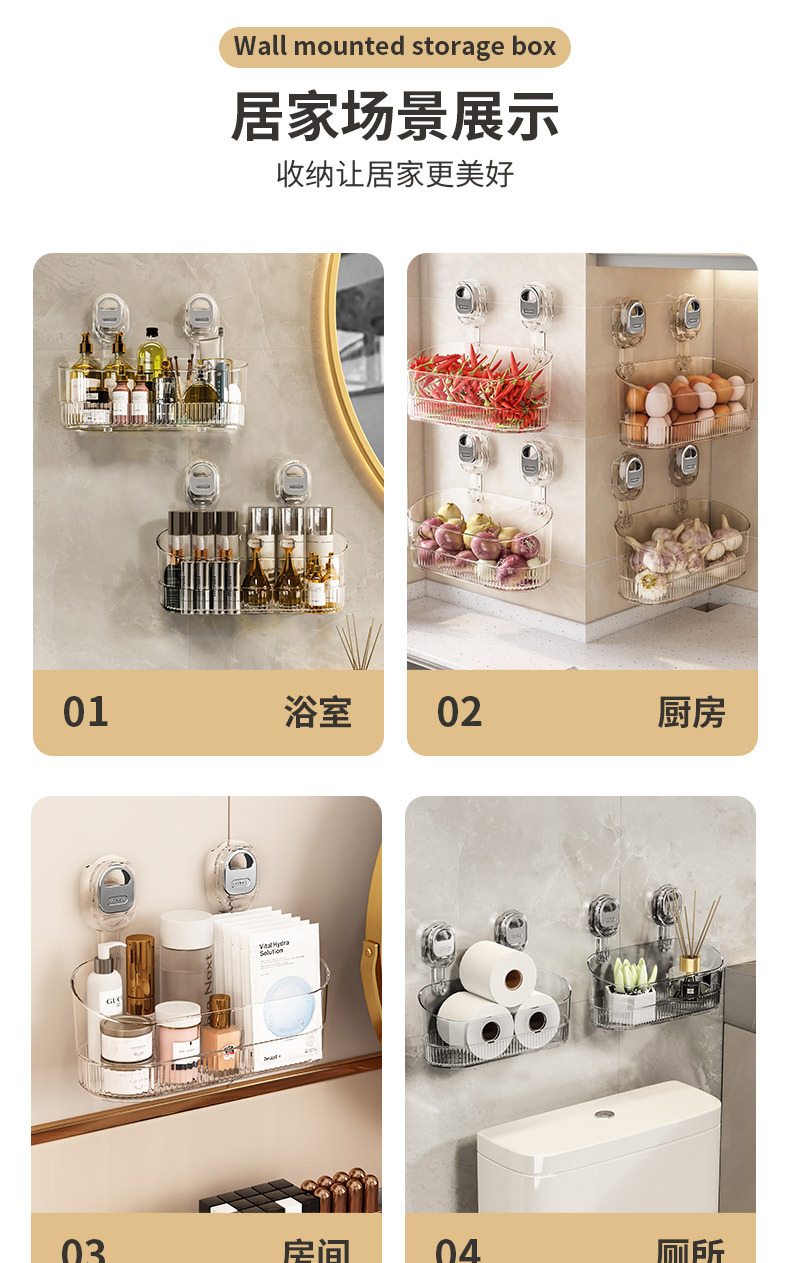 가정용 욕실 벽에 흡입 컵 보관함 펀치 없음 흔적 없음 벽걸이 형 보관함 욕실 싱크대 보관함