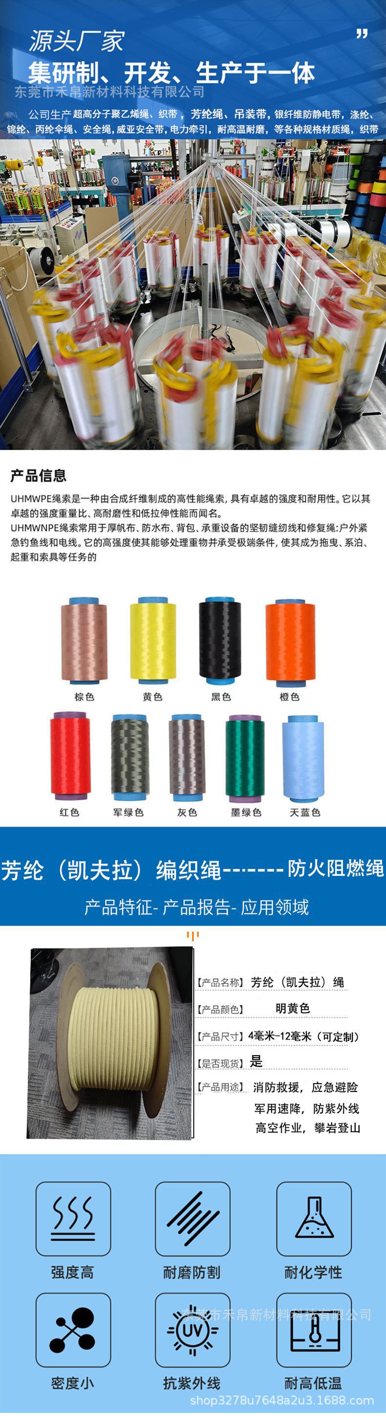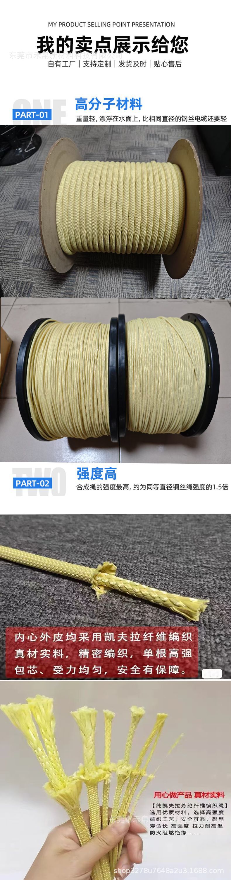 아라미드 케블라 방화 로프, 화재 구조 로프, 동굴 탐험 등산 로프, 냄비 귀 로프, 고밀도 초강력 인장 로프