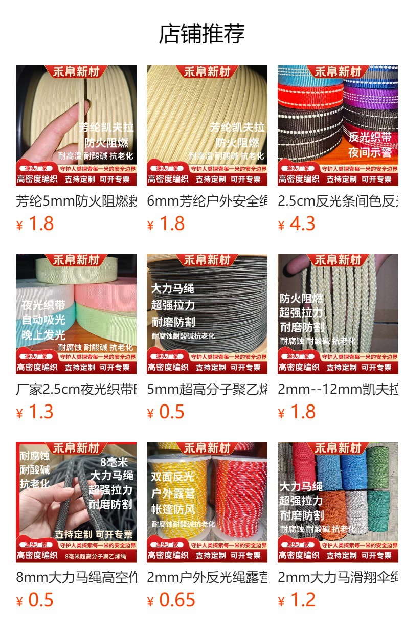 아라미드 케블라 방화 로프, 화재 구조 로프, 동굴 탐험 등산 로프, 냄비 귀 로프, 고밀도 초강력 인장 로프스토어 가기