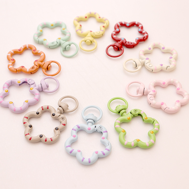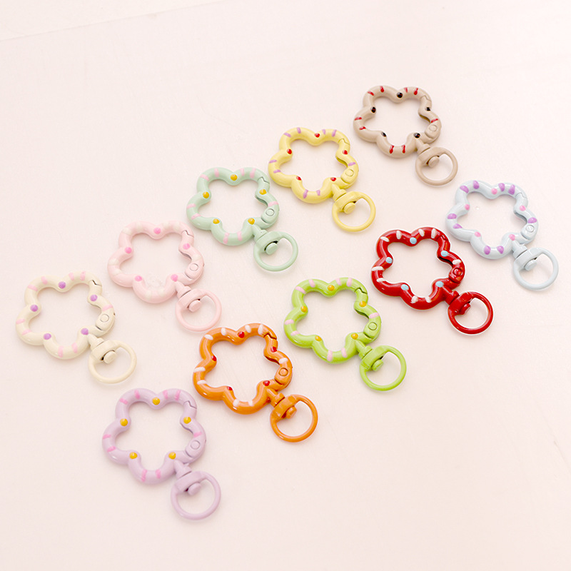 다채로운 매화 오픈 링 꽃 스프링 버클 diy 쥬얼리 액세서리 도매 페인트 금속 링 범용 키 체인
