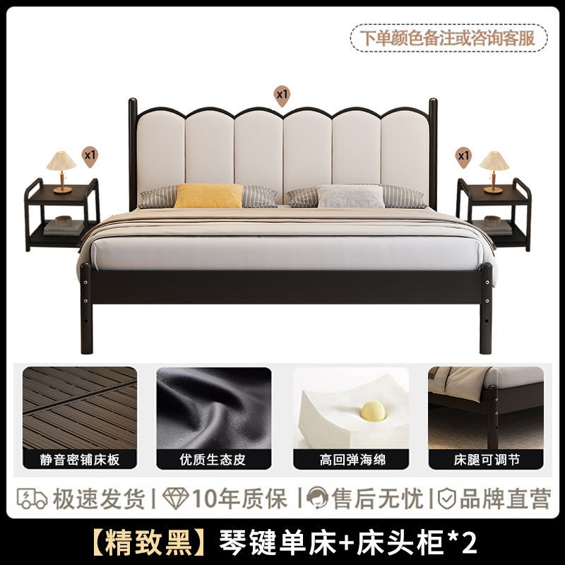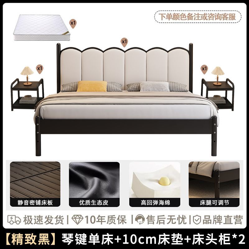 • [절묘한 블랙] 키 싱글 침대 + 20cm 스프링 매트리스 + 캐비닛 * 2