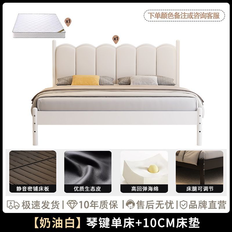 단철 침대 프렌치 크림 초박형 소프트 박스 침대 헤드보드 모던 심플 철제 프레임 침대 더블 무음 홈 침대 싱글 침대