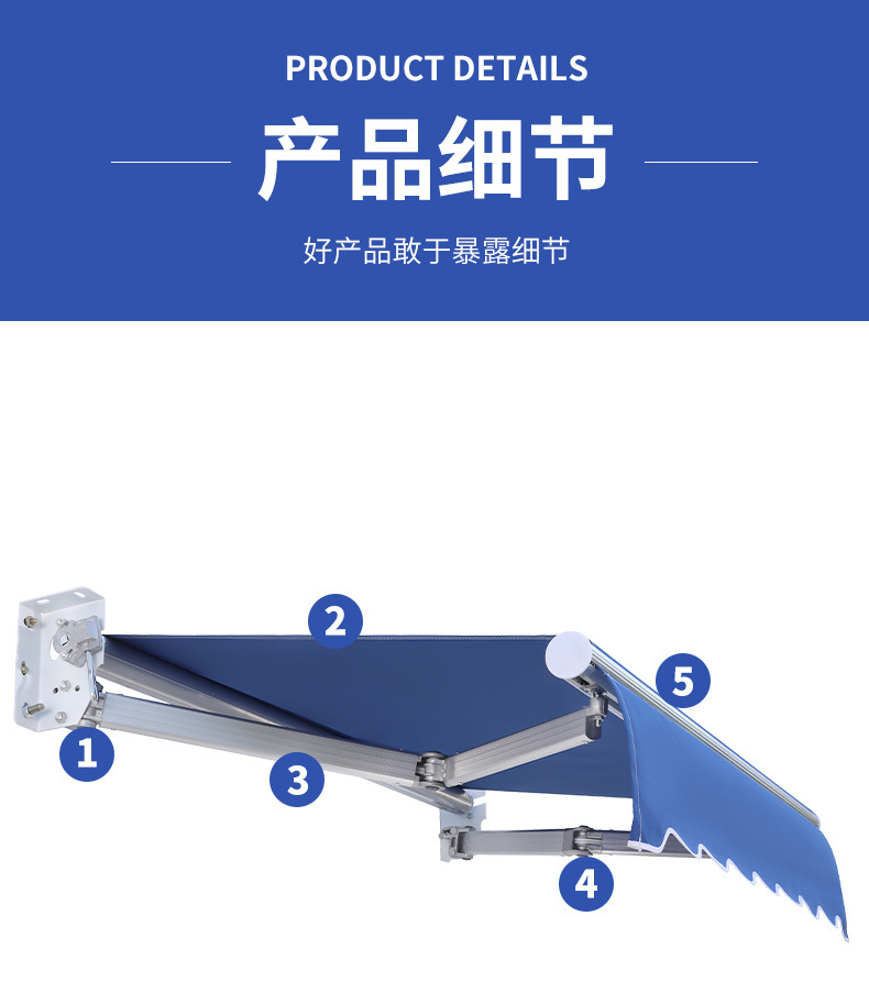 태양 그늘 접이식 개폐식 전기 수동 수축 태양 그늘 발코니 방수 야외 텐트 안뜰 차양
