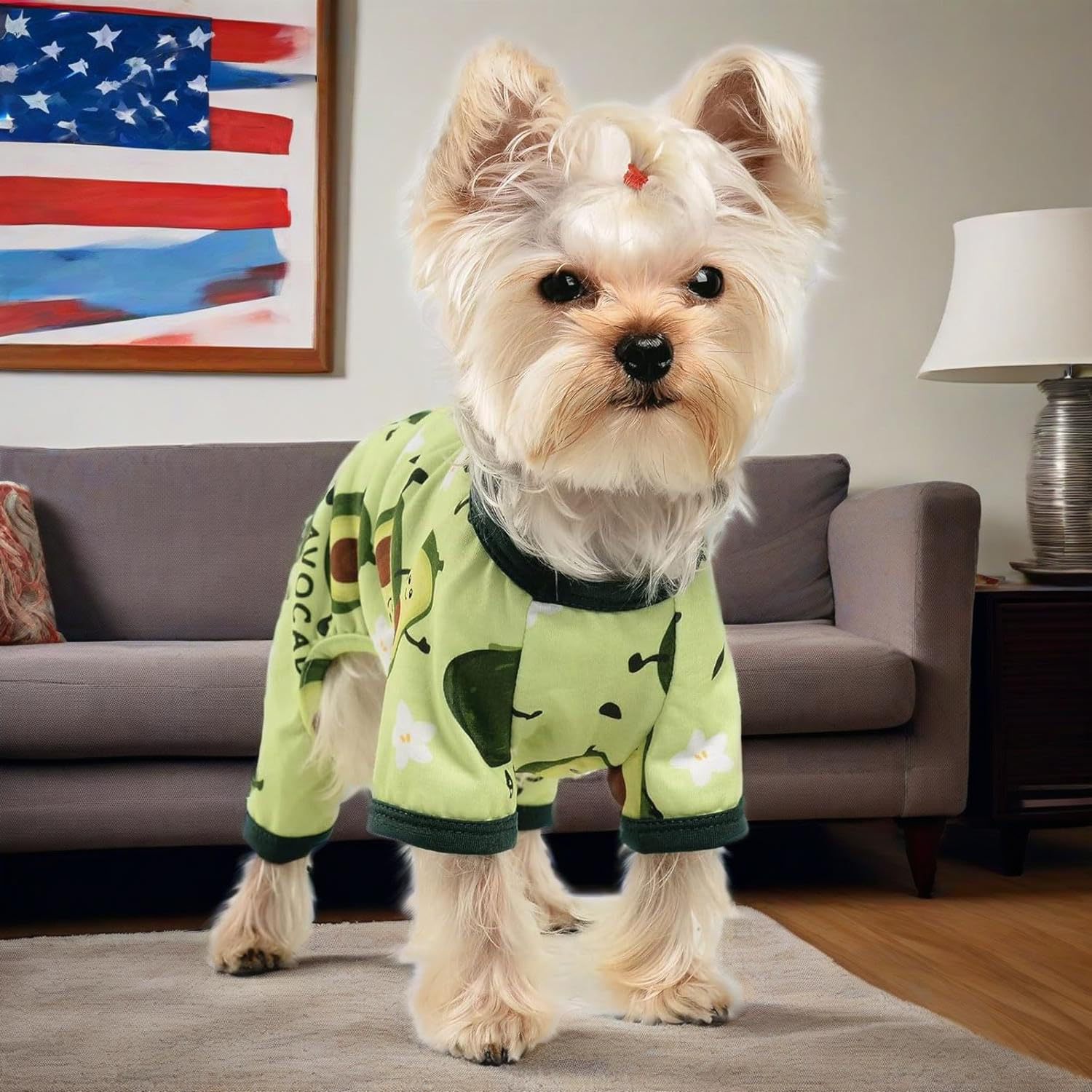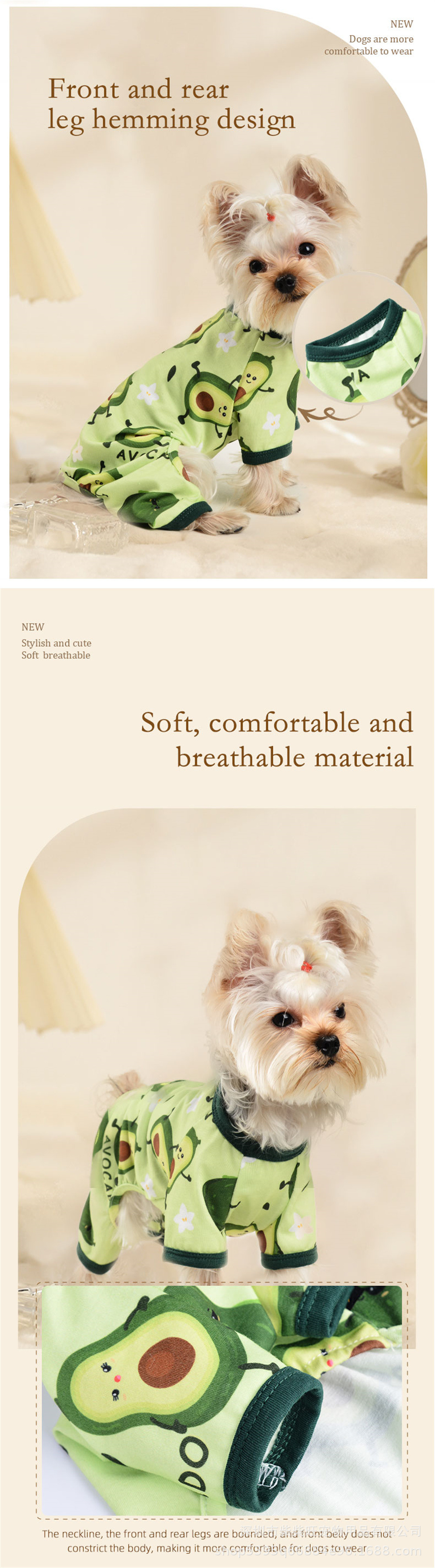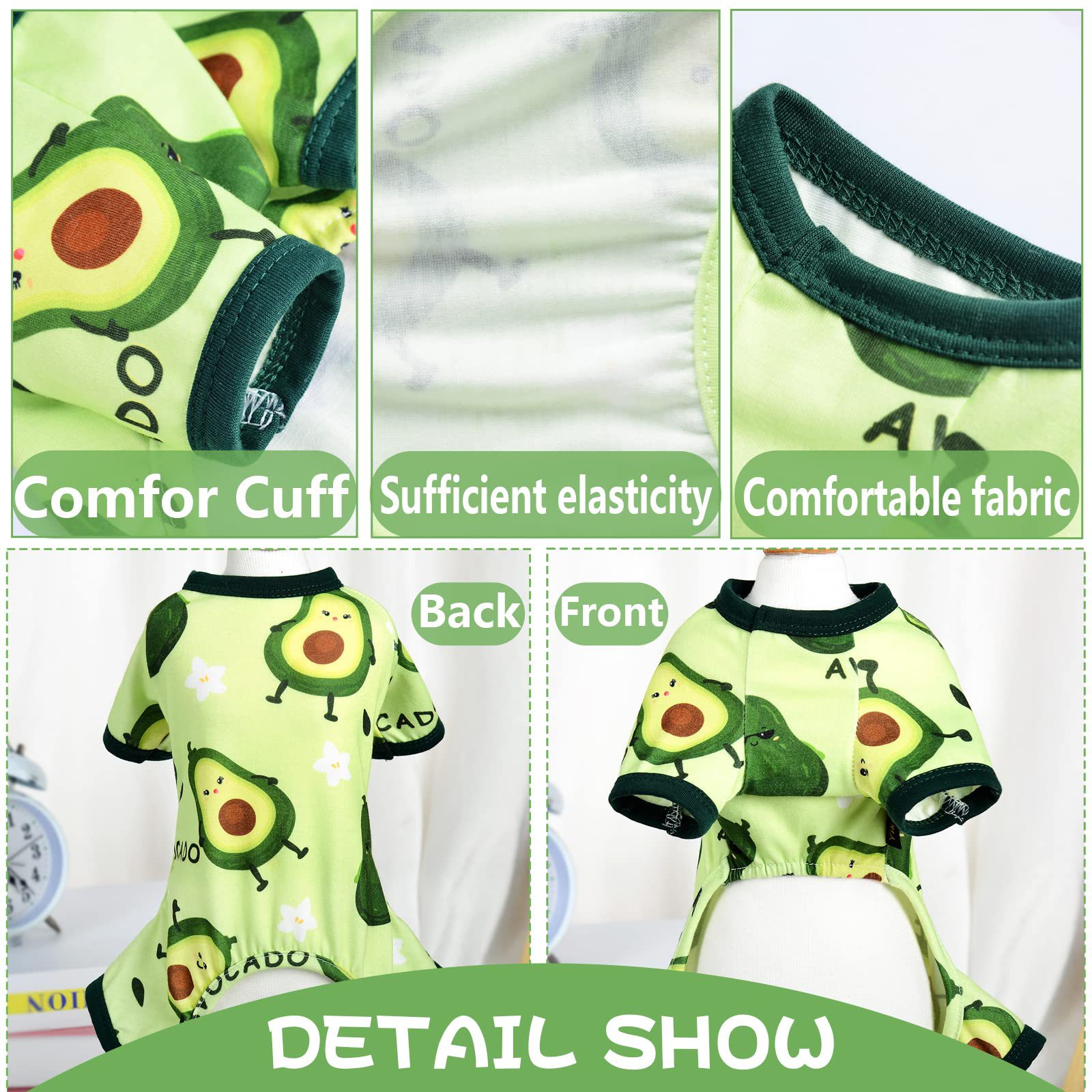 여름 애완 동물 옷 도매 귀엽고 편안한 아보카도 프린트 점프 슈트 사계절 유행 야외 애완견스토어 가기