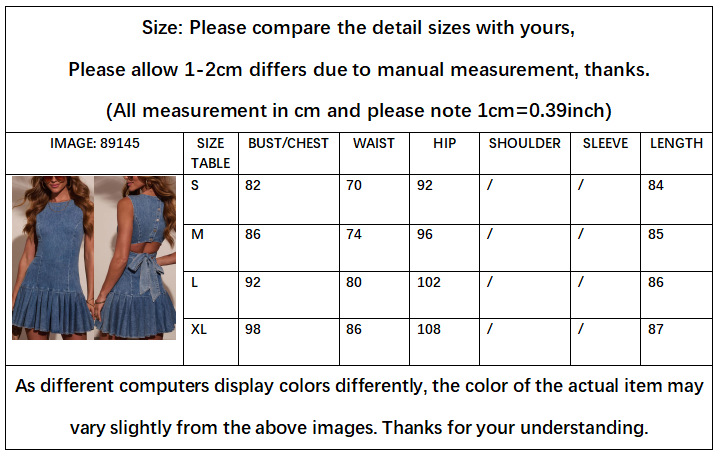2025 유럽과 미국의 국경 간 야마 여성 패션 섹시한 민소매 주름 허리 데님 원피스 89145