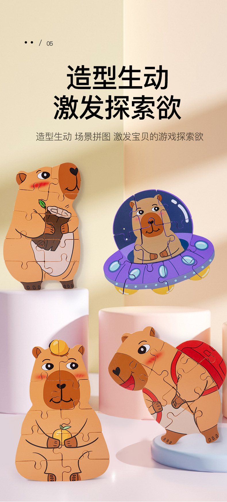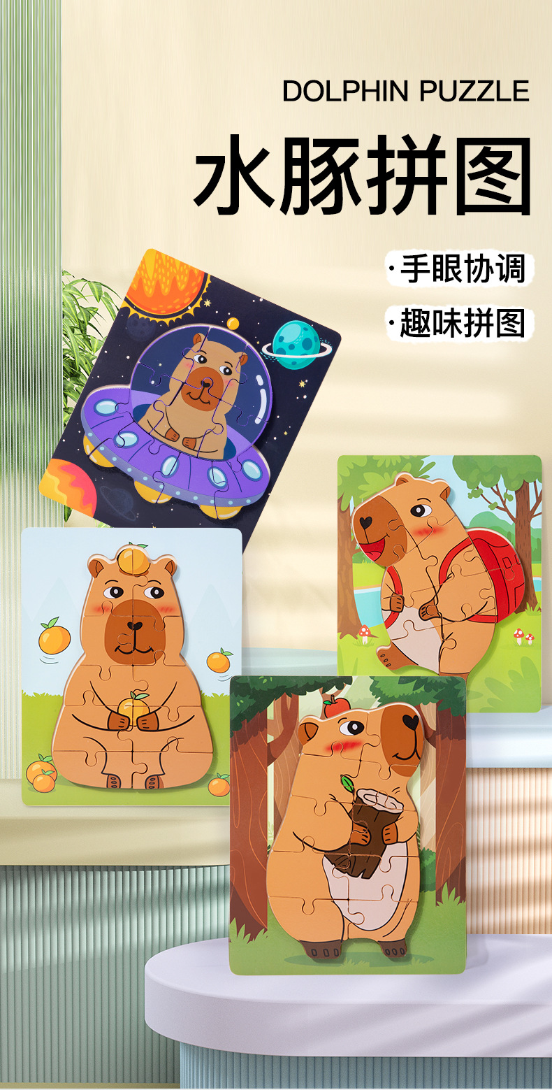 자기 어린이 교육 카드 Kapibara 퍼즐 3-6 세 조기 교육 유치원 소년과 소녀 계발 장난감스토어 가기