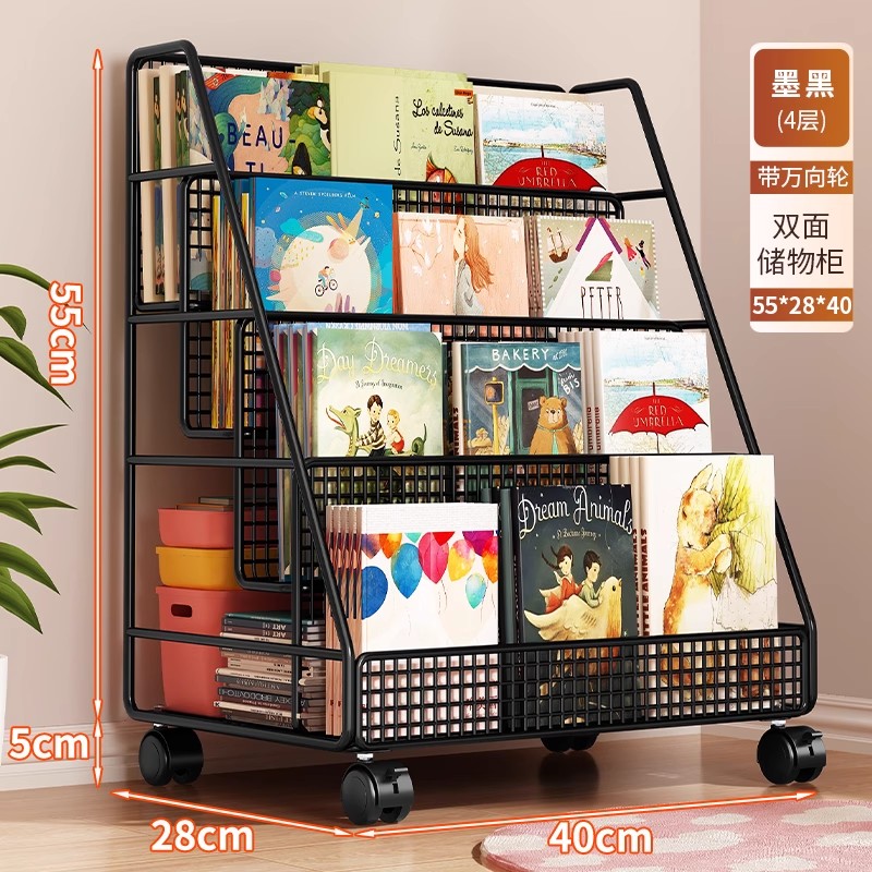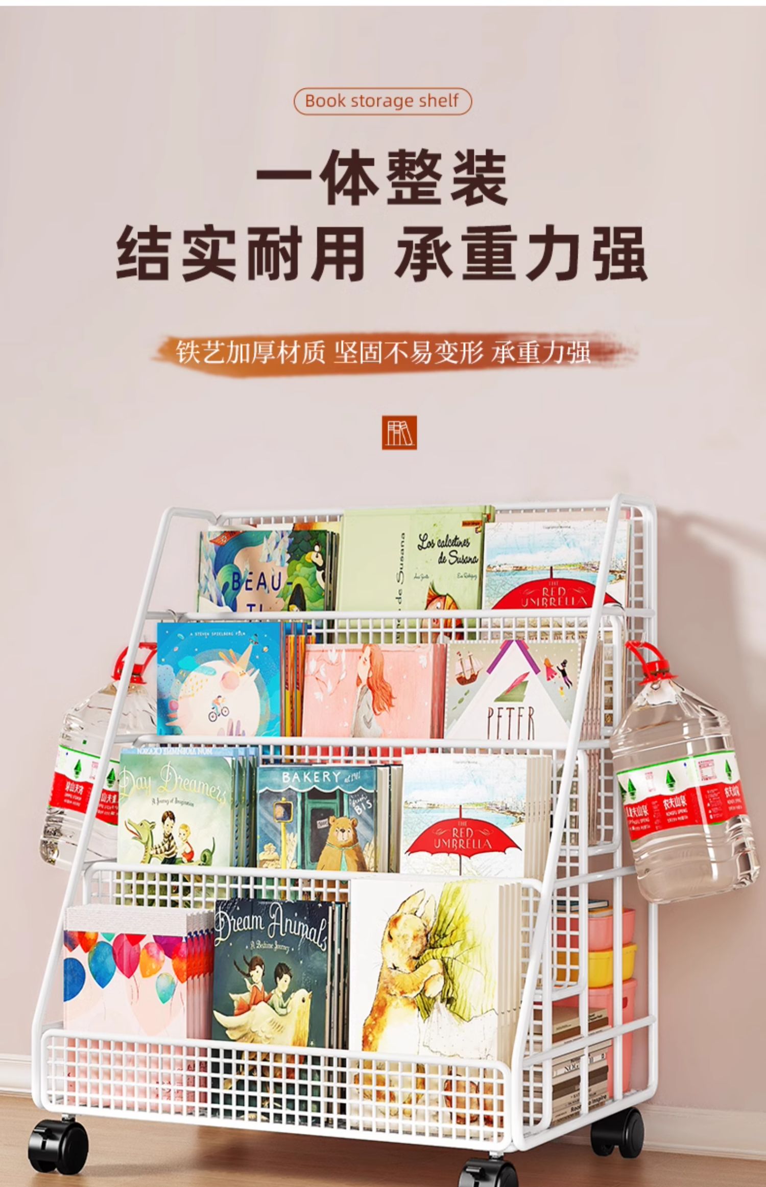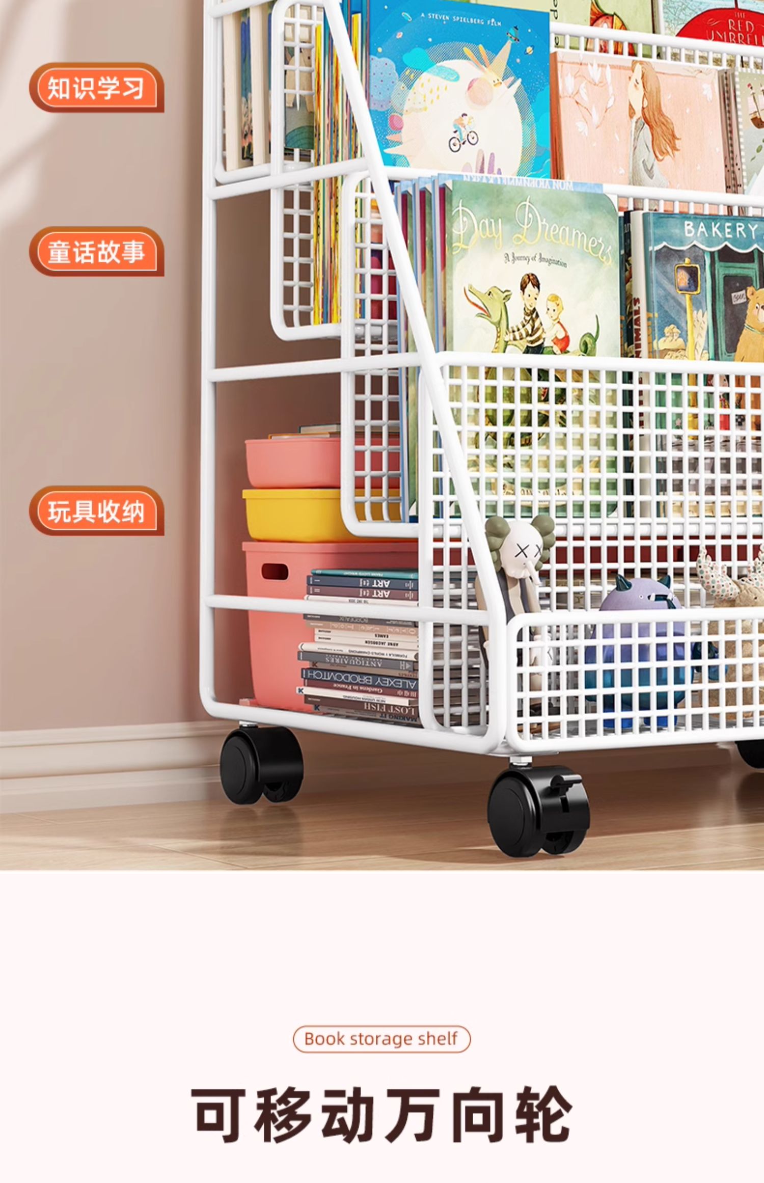 A6L 책장 바닥 스탠딩 스토리지 랙 어린이 그림책 모바일 트롤리 스토리지 랙 아기 간단한 바닥 스탠딩 다층스토어 가기