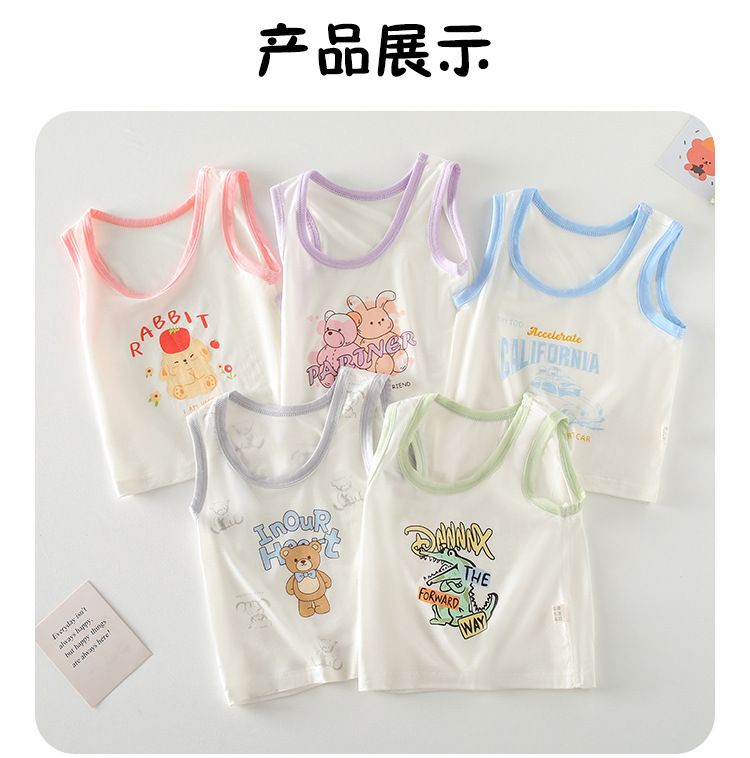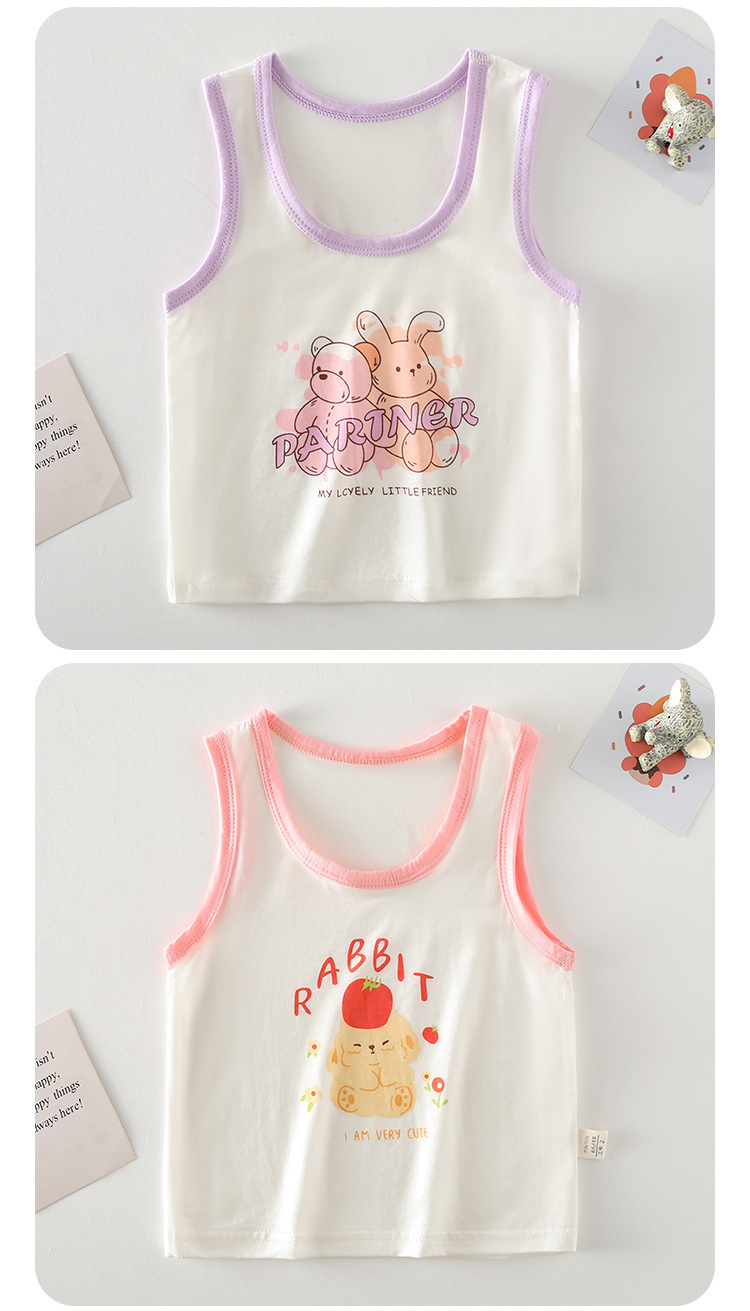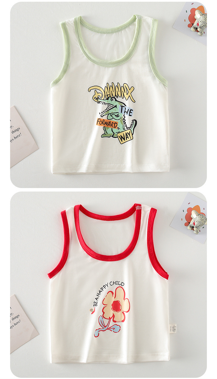 아기 옷 소년 소녀를위한 여름 얇은 아기 배꼽 탑 내부 착용 민소매 기본 셔츠 만화스토어 가기