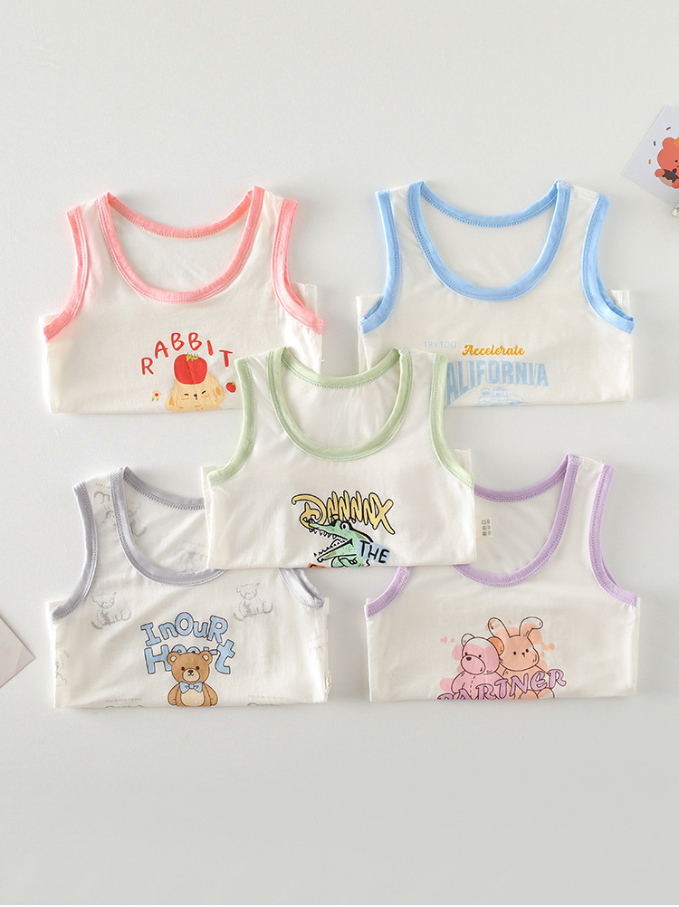 아기 옷 소년 소녀를위한 여름 얇은 아기 배꼽 탑 내부 착용 민소매 기본 셔츠 만화