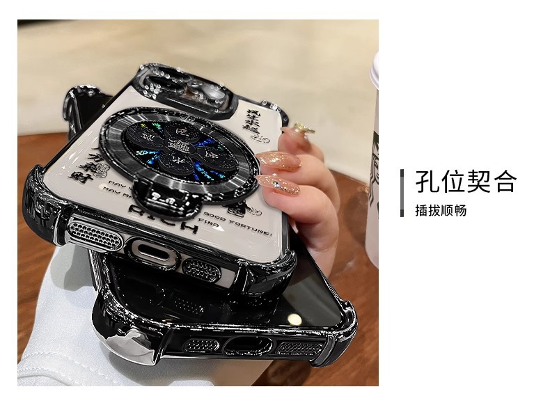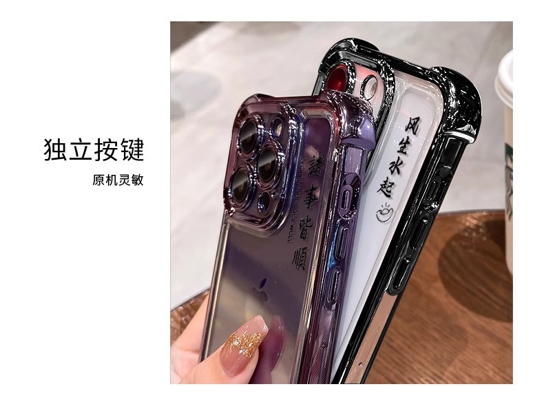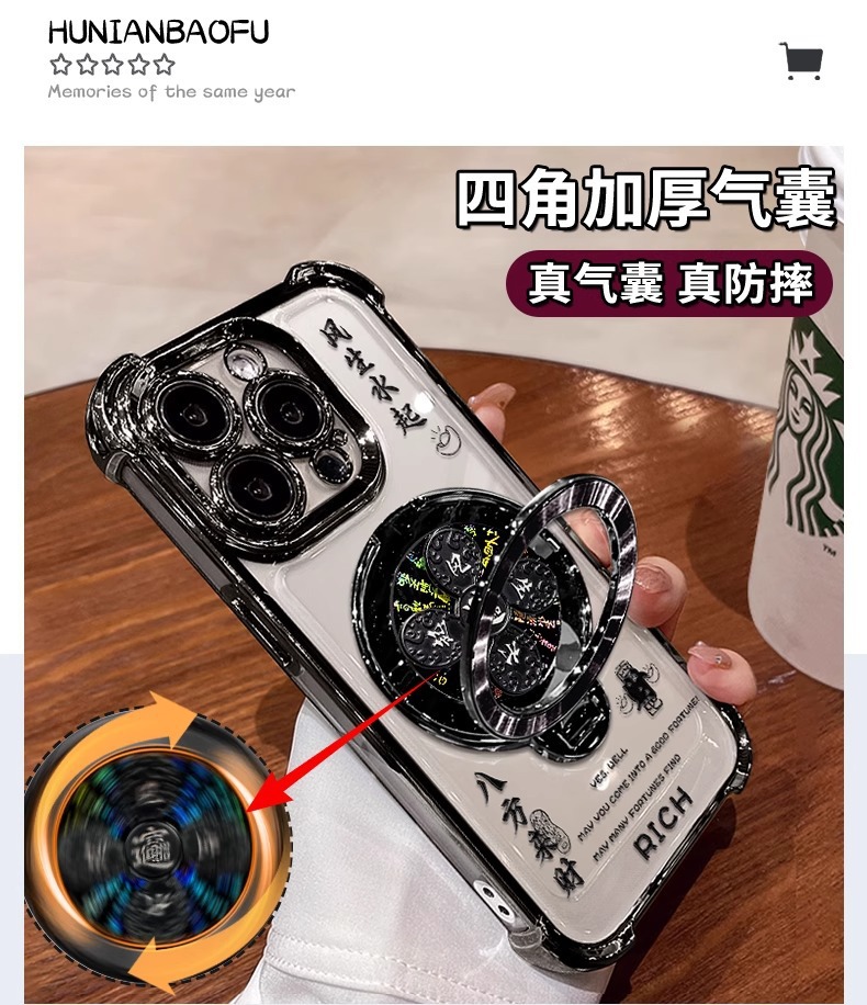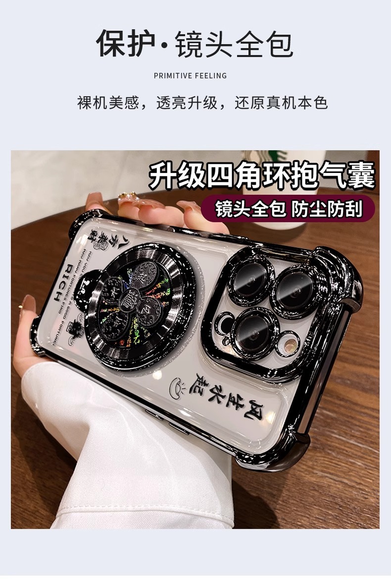 애플 16pro 휴대 전화 케이스 13 투명 실리콘 15 전기 낙하 방지 8 Guofeng에 적합한 바람과 물 회전 브래킷스토어 가기
