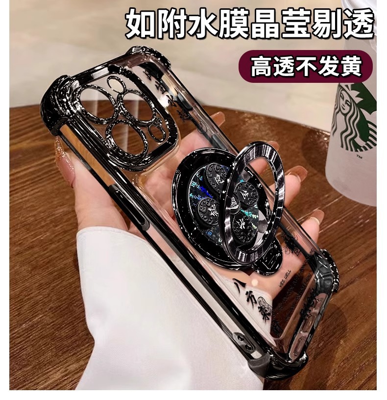 애플 16pro 휴대 전화 케이스 13 투명 실리콘 15 전기 낙하 방지 8 Guofeng에 적합한 바람과 물 회전 브래킷
