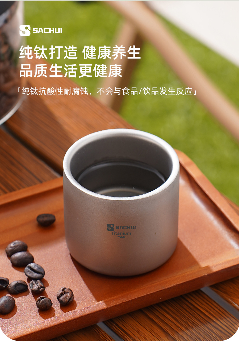 순수 티타늄 컵 더블 레이어 안티 스케일 커피 컵 야외 휴대용 티 컵 마스터 컵 와인 컵 캠핑 여행 직접 마시는 컵