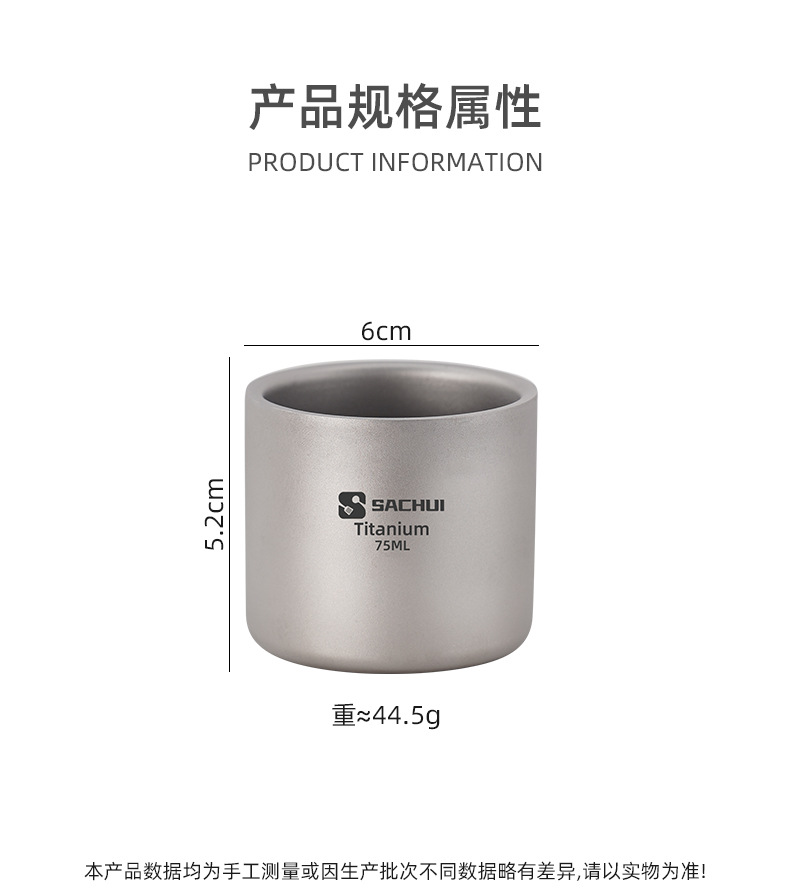 • 【75ml】이중 순수 티타늄 물컵 5개 세트
