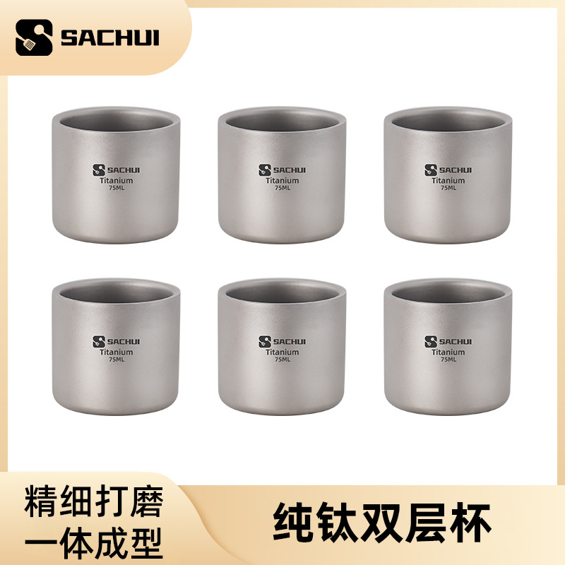 • 【75ml】이중 순수 티타늄 물컵 6개 팩