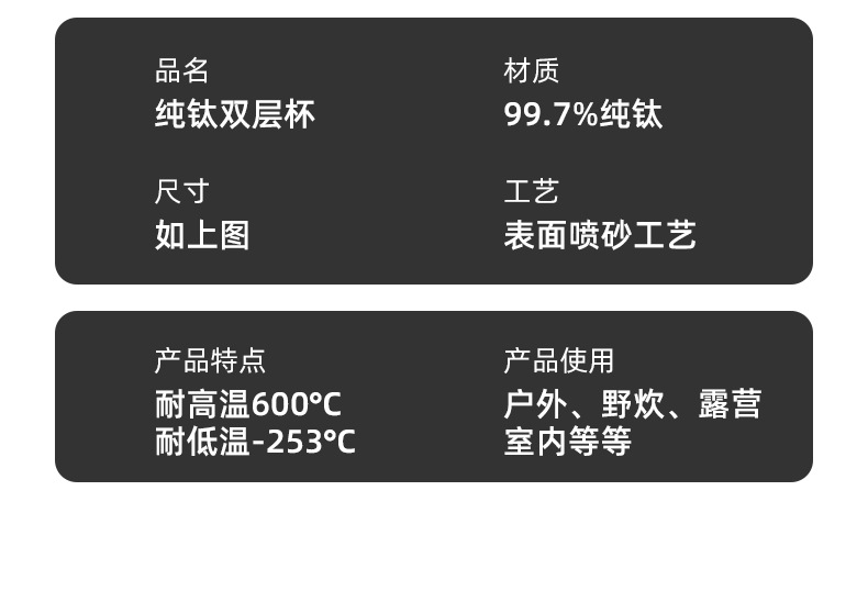 • 【75ml】이중 순수 티타늄 물컵 2개 팩