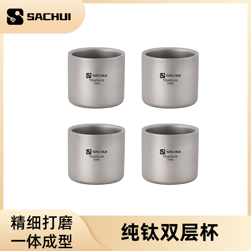 • 【75ml】이중 순수 티타늄 물컵 4개 팩