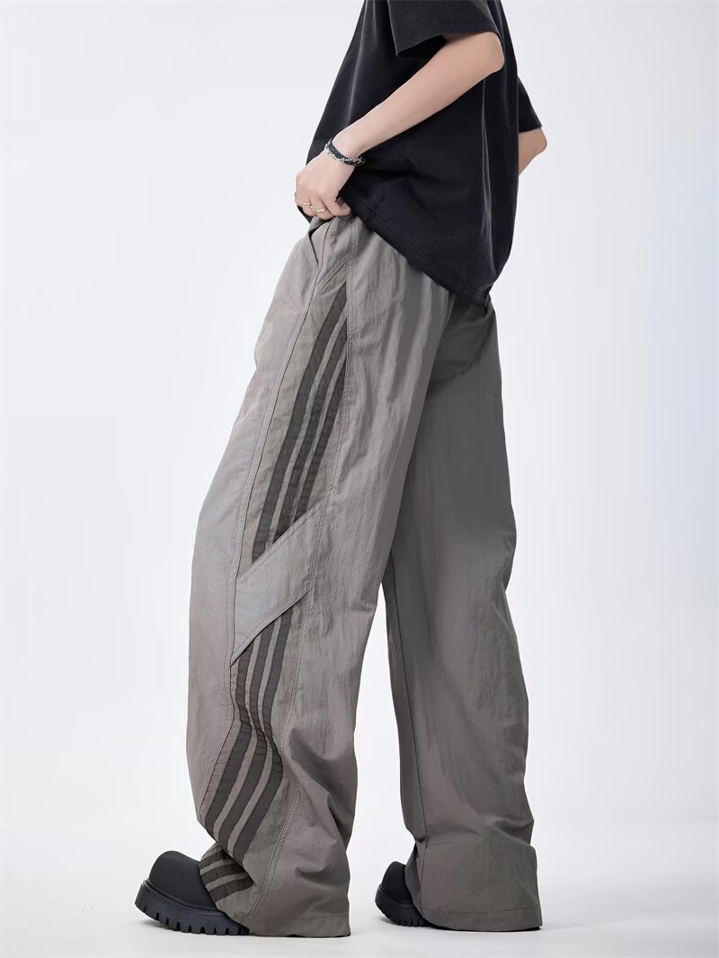 트렌디한 아메리칸 스트라이프 속건성 낙하산 바지 남성 여름 얇은 트렌디 루즈 와이드 레그 스트레이트 스포츠 바지스토어 가기