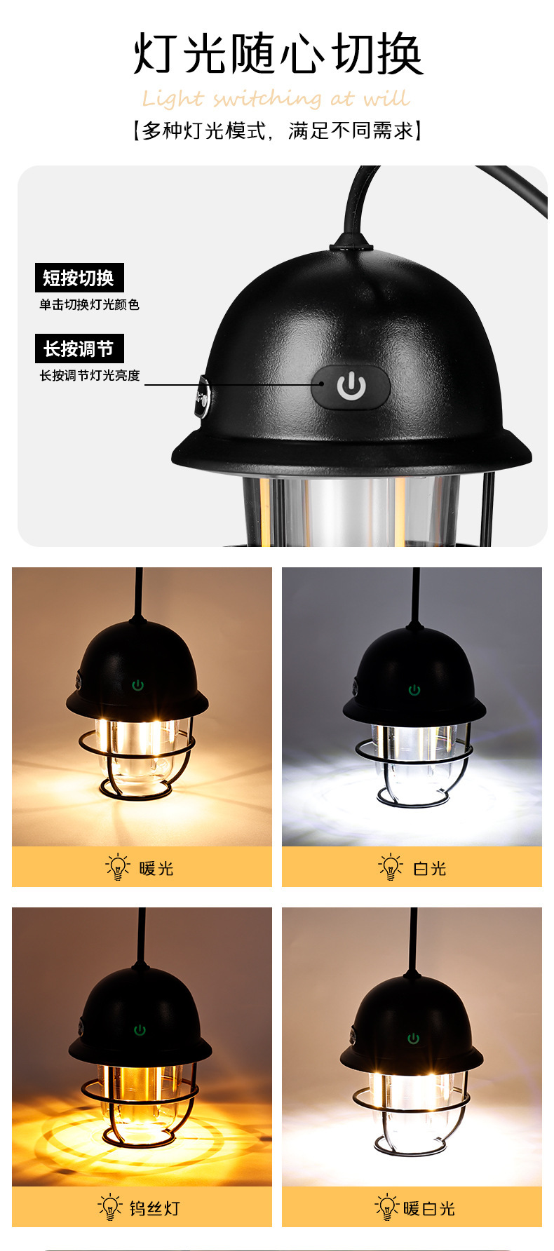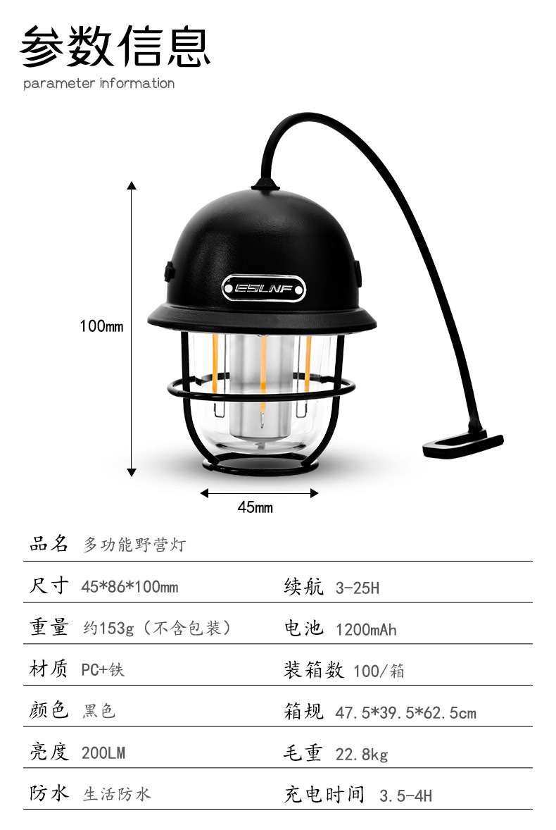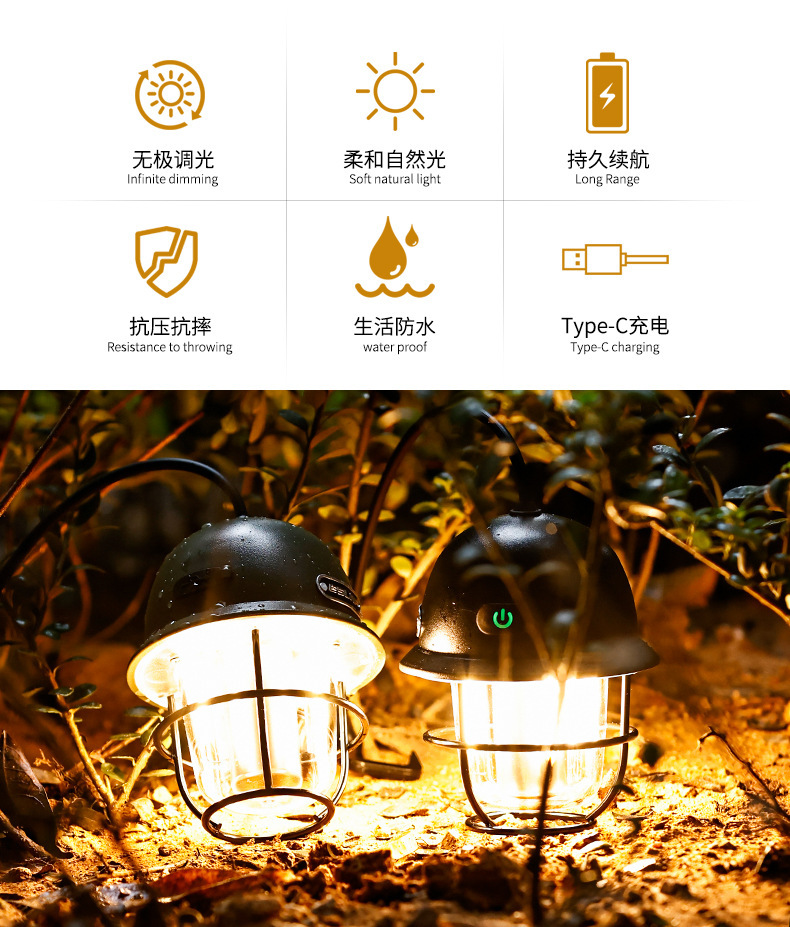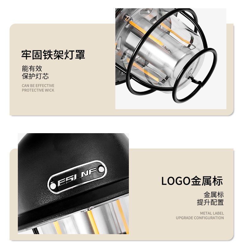 ESLNF 캠핑 라이트 분위기 라이트 야외 휴대용 조명 USB 충전식 슈퍼 긴 배터리 캠프 텐트 라이트 캠핑 라이트스토어 가기