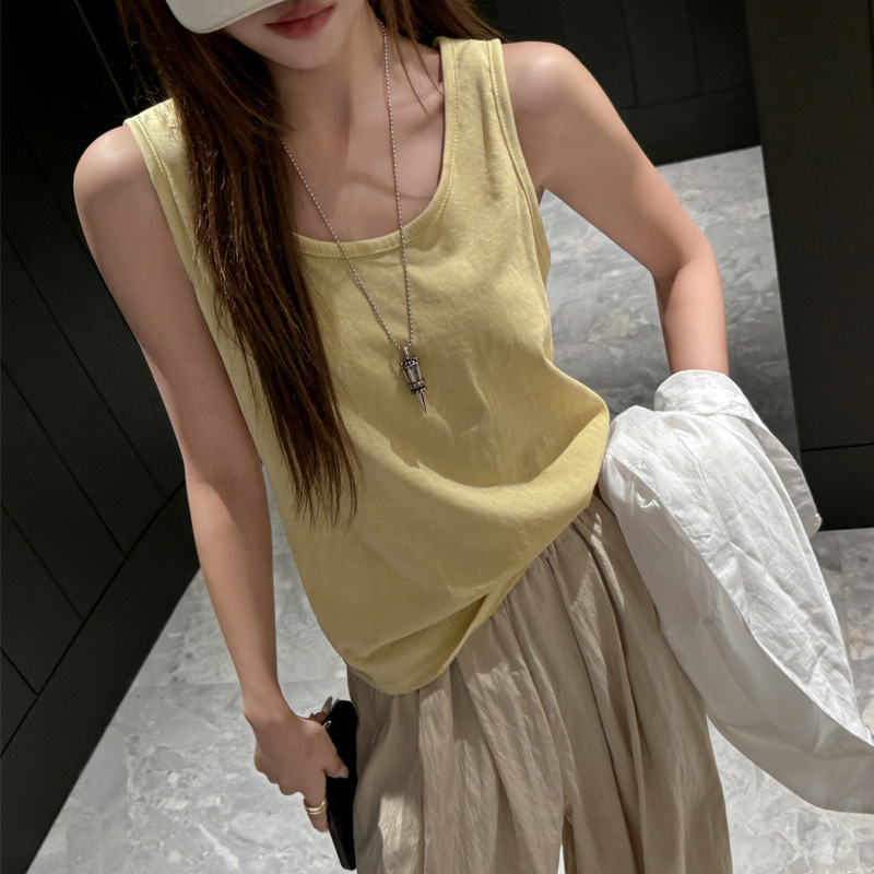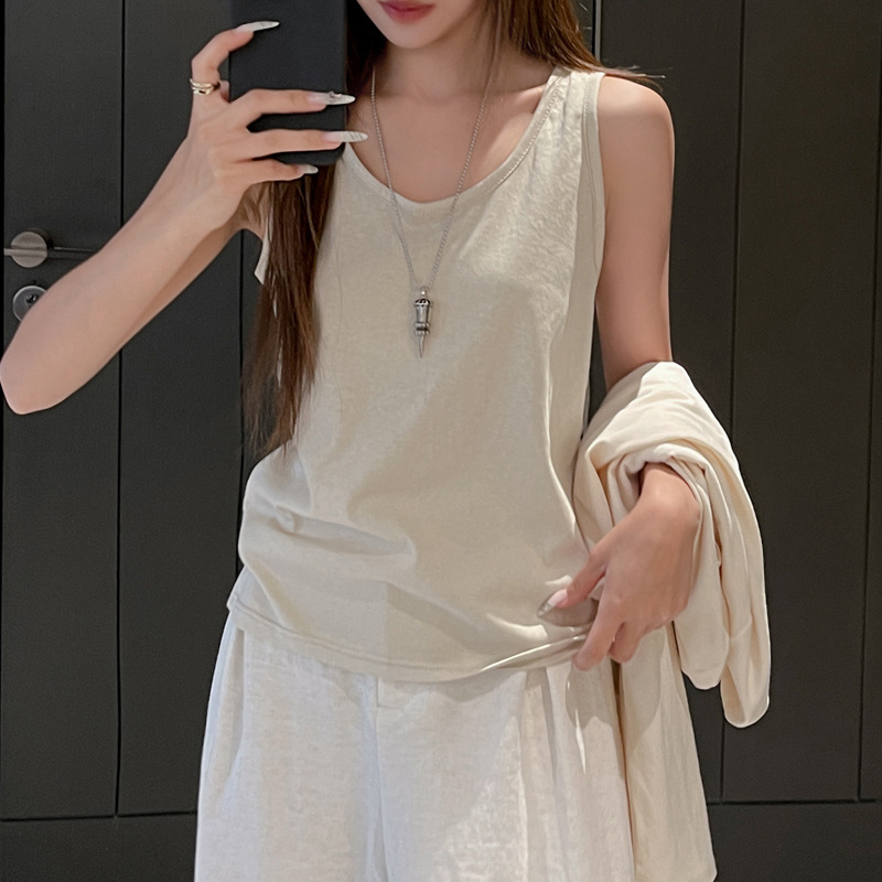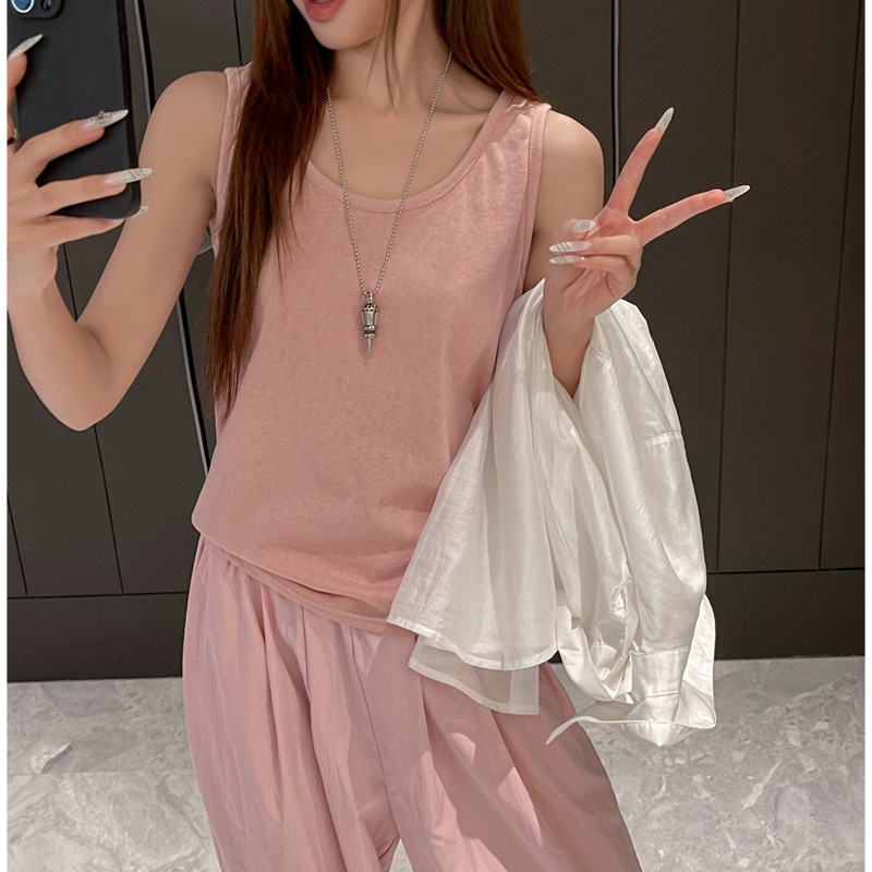 눈송이 코튼 루즈베이스 내부 I 자형 카미솔 여성 아우터 민소매 솔리드 컬러 올 매치 핫 걸탑