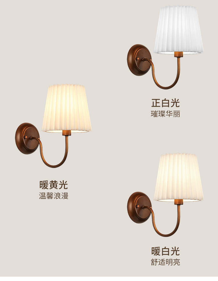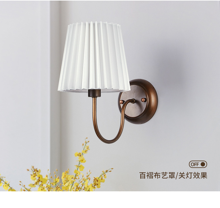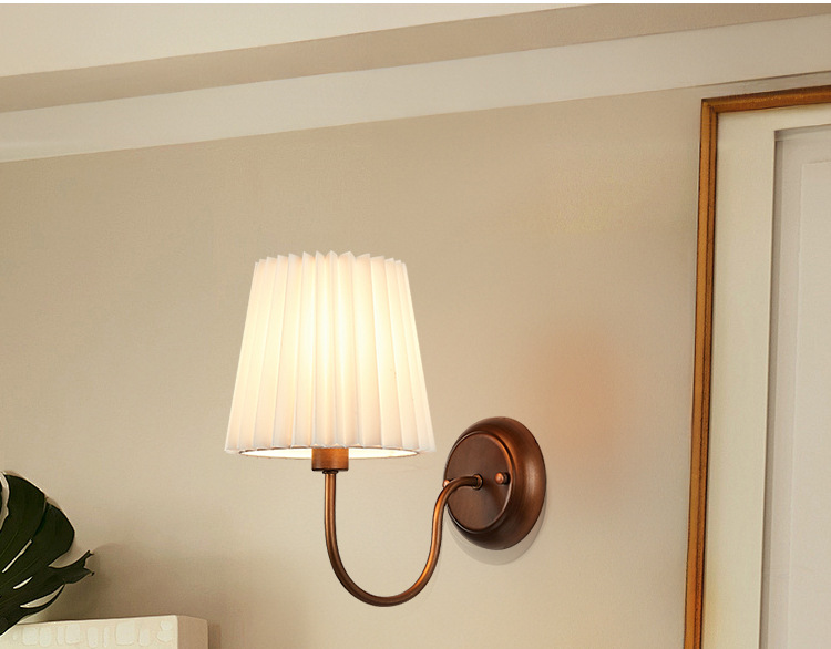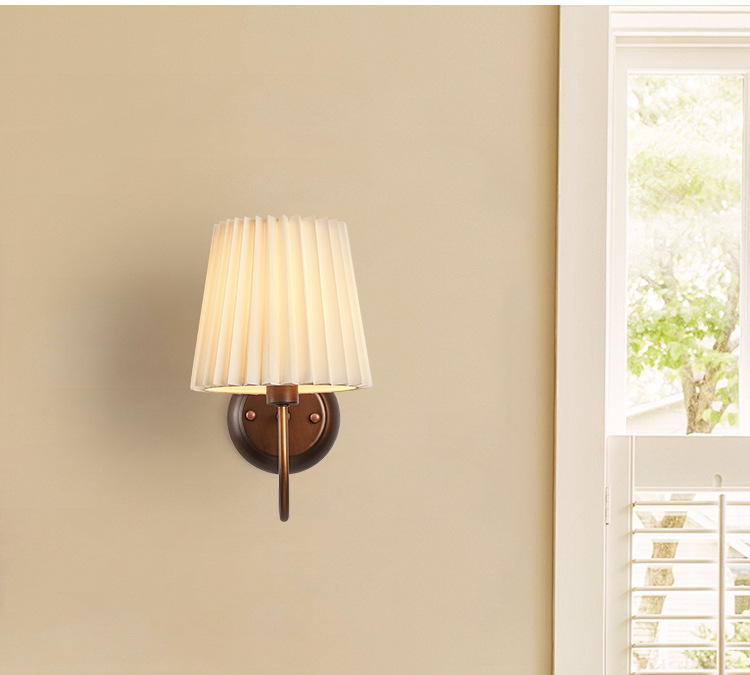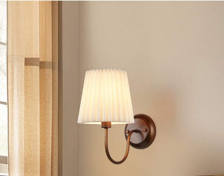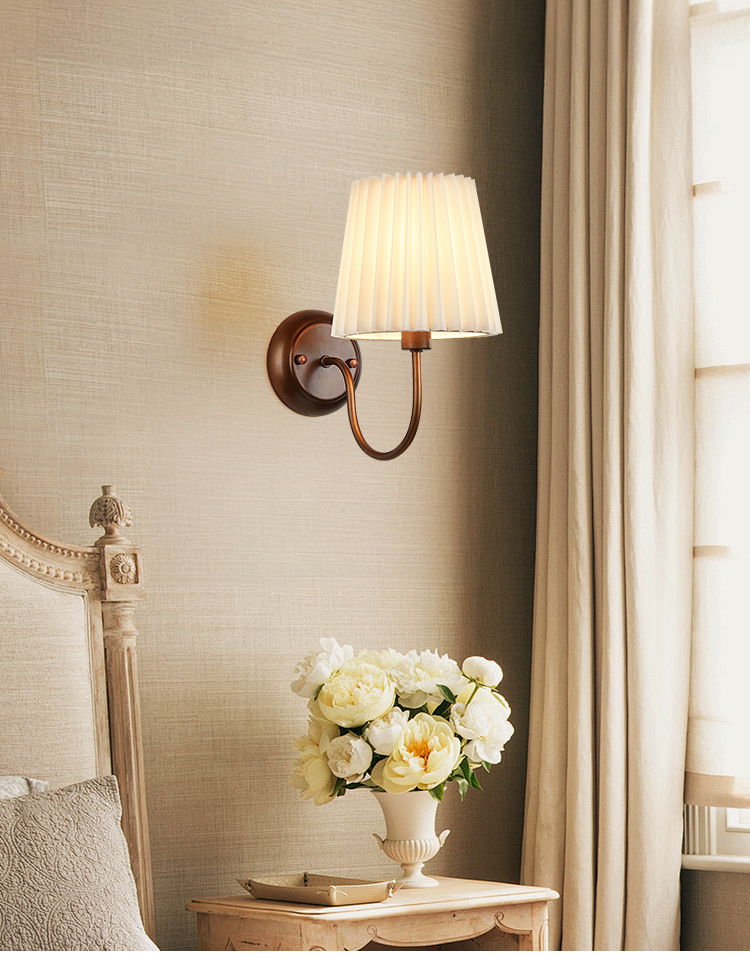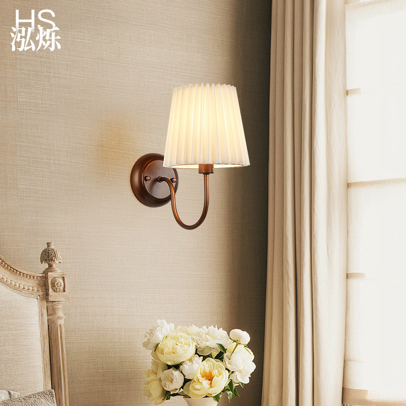 미국 복고풍 벽 램프 마스터 침실 침대 옆 램프 거실 배경 벽 조명 소박한 간단한 주름 직물 램프