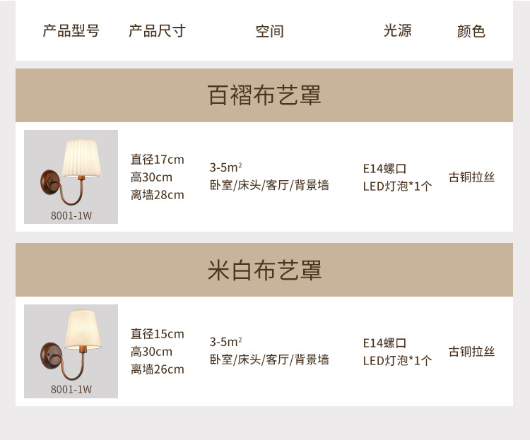 • 8001 청동 A 스타일 벽 램프