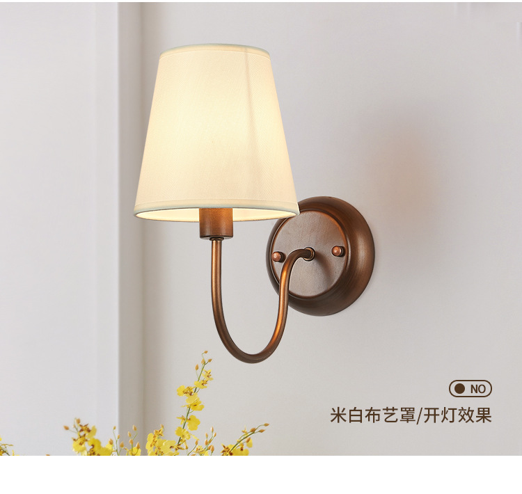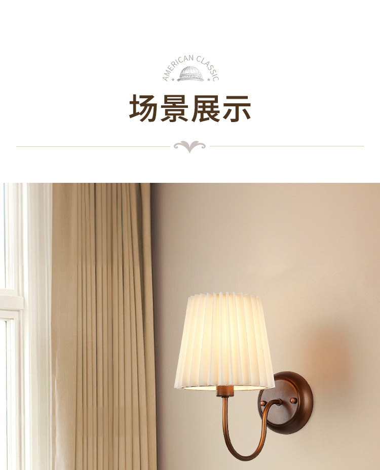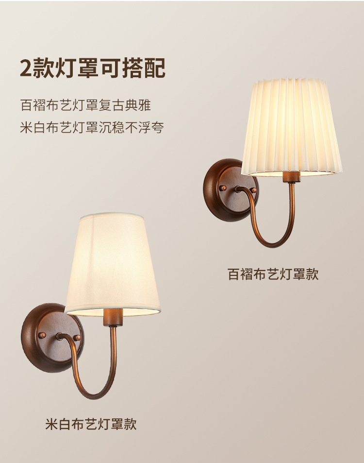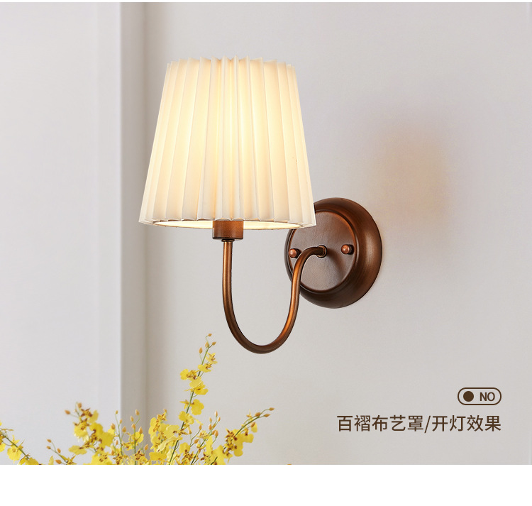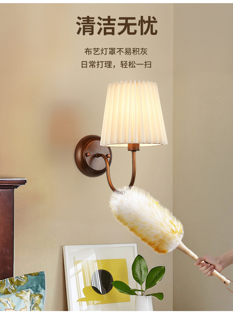 미국 복고풍 벽 램프 마스터 침실 침대 옆 램프 거실 배경 벽 조명 소박한 간단한 주름 직물 램프스토어 가기