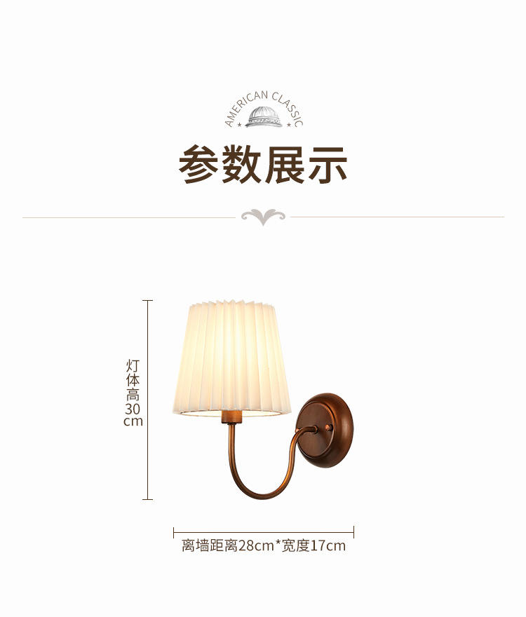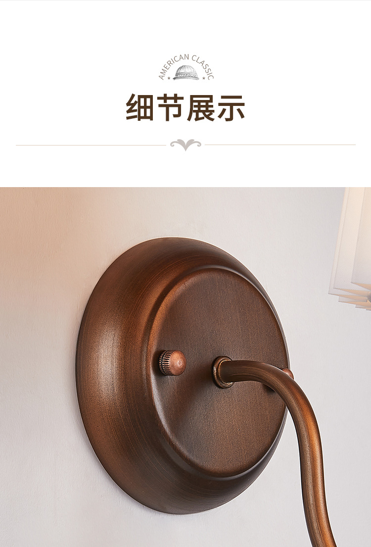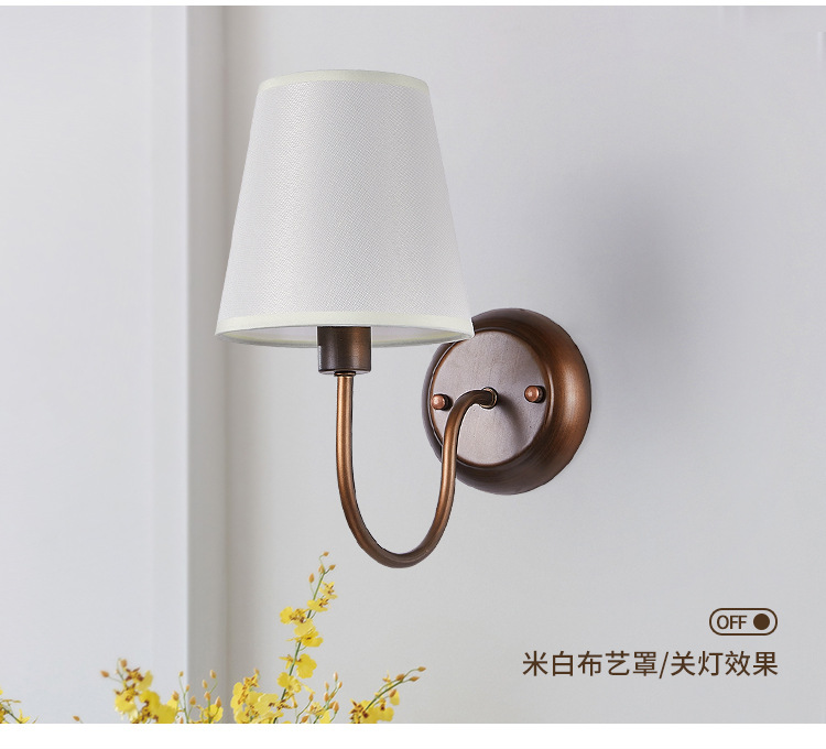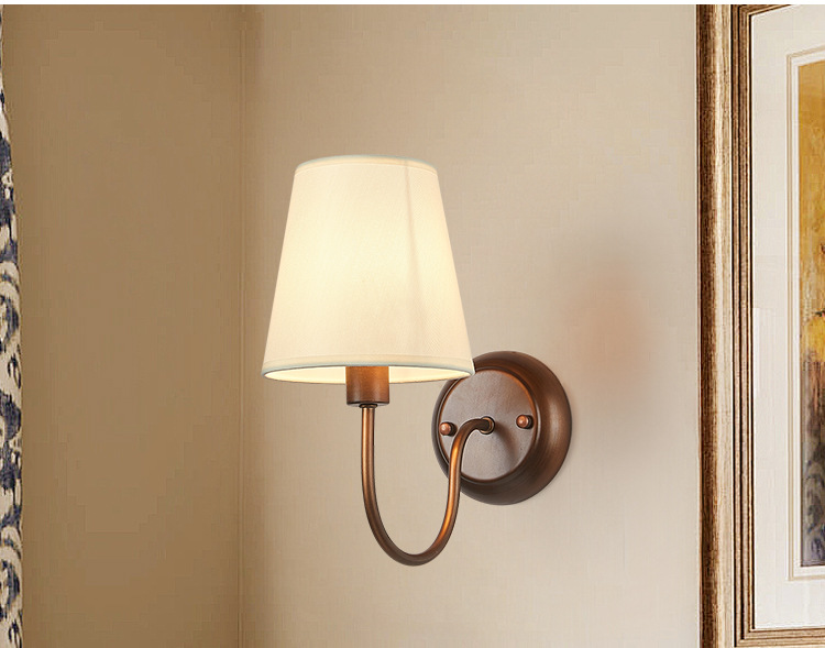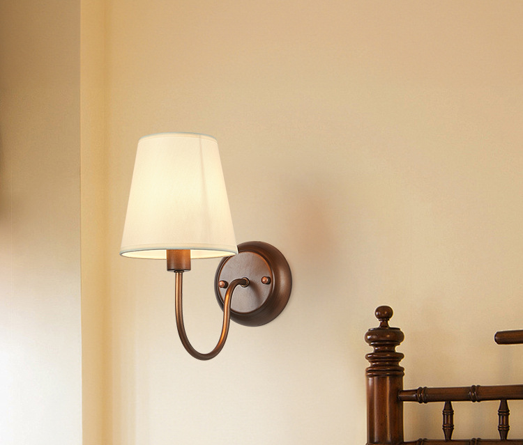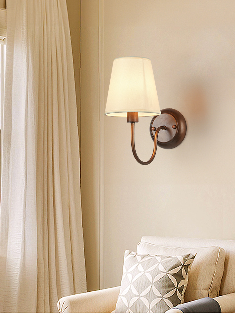 미국 복고풍 벽 램프 마스터 침실 침대 옆 램프 거실 배경 벽 조명 소박한 간단한 주름 직물 램프스토어 가기