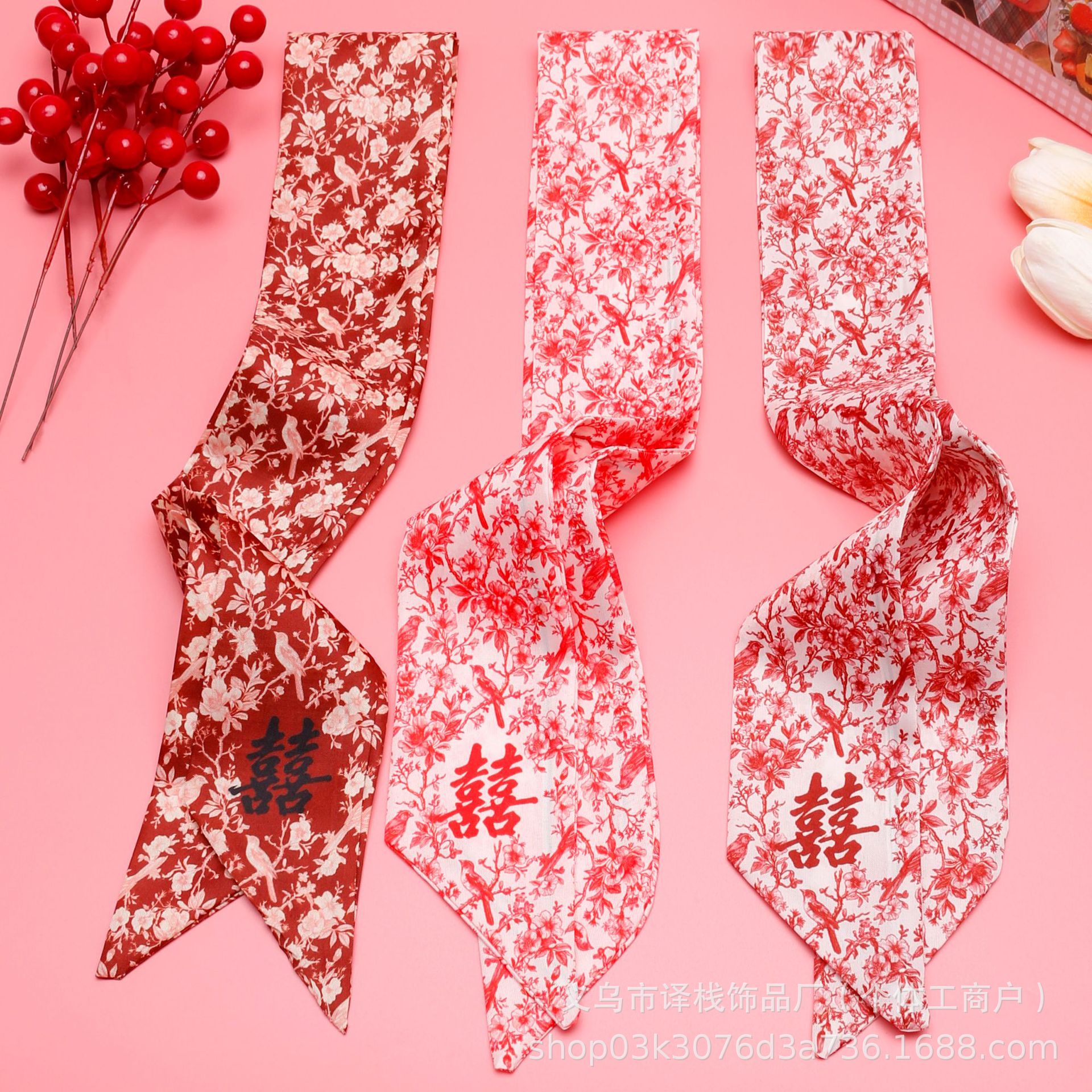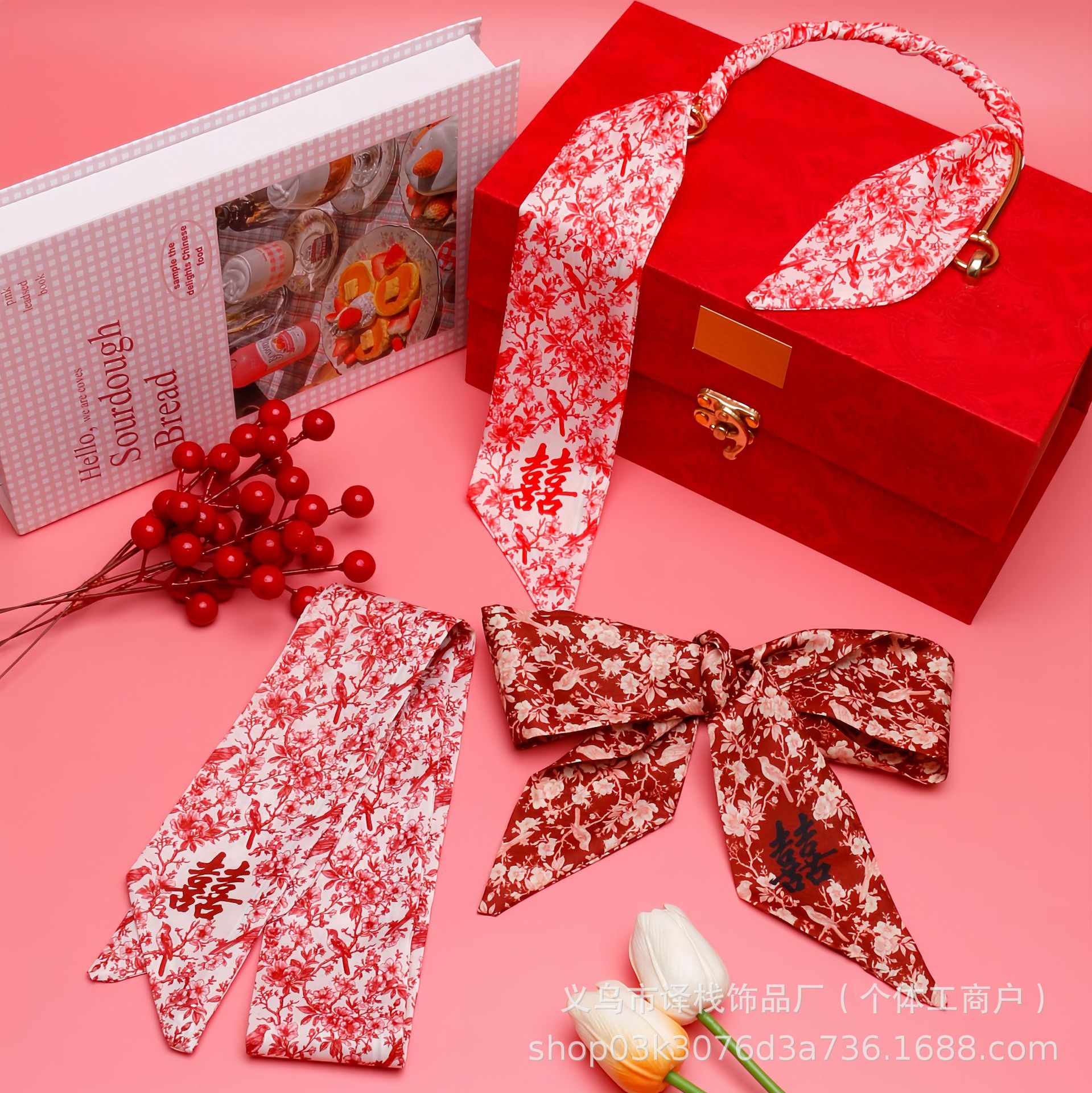 2025년 신상 레드 축제용 실크 스카프 리본 다용도 장식 리본 기념품 상자 장식 리본 우아한 축제용 스카프스토어 가기