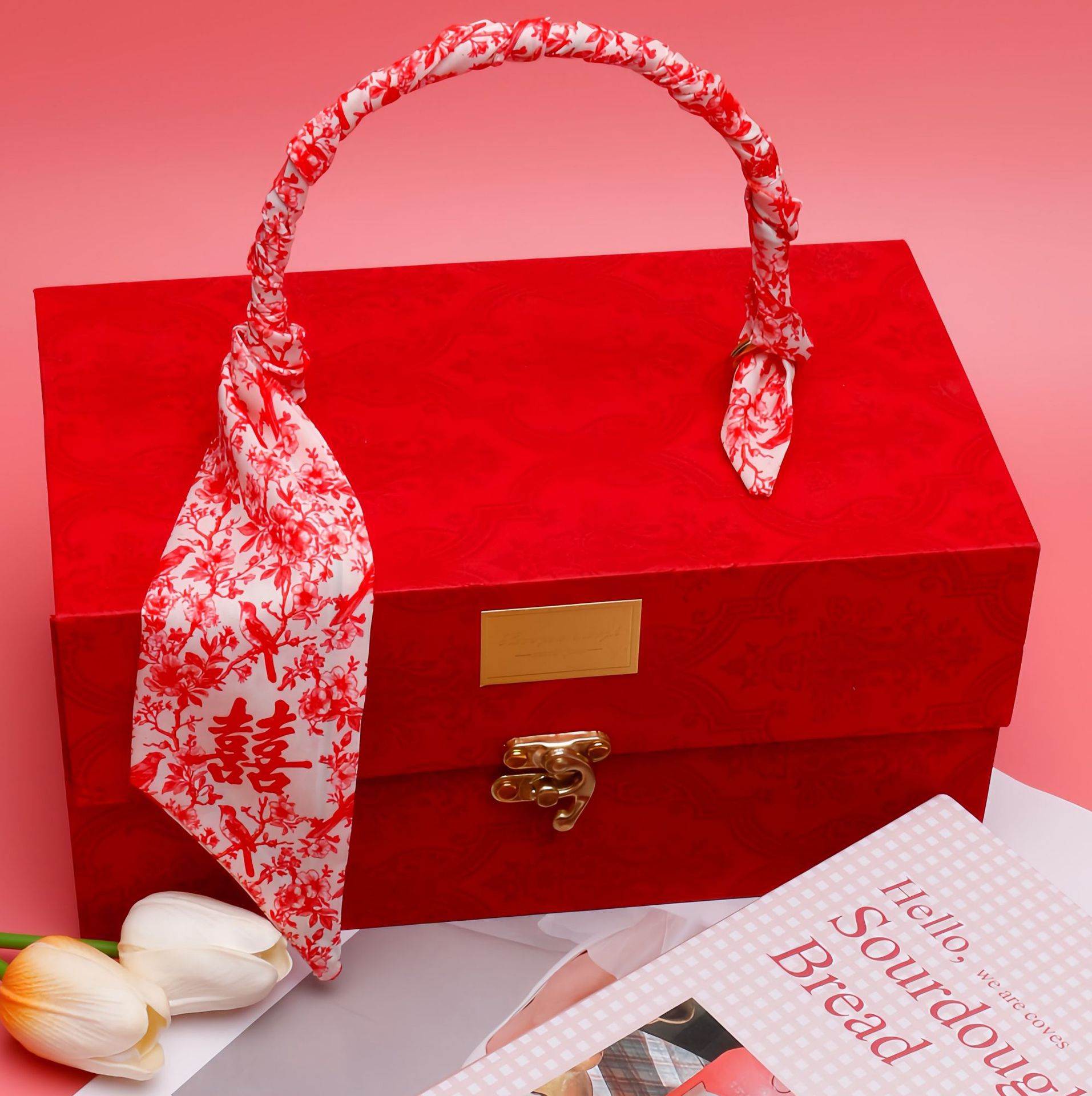 2025년 신상 레드 축제용 실크 스카프 리본 다용도 장식 리본 기념품 상자 장식 리본 우아한 축제용 스카프