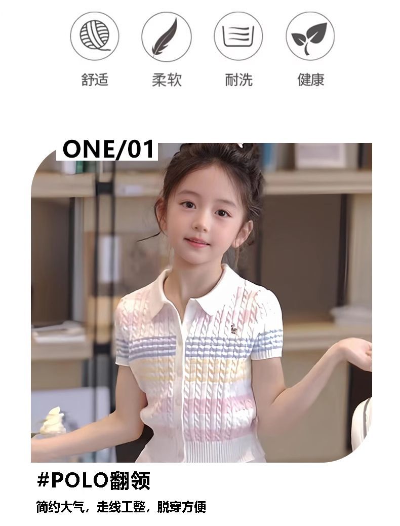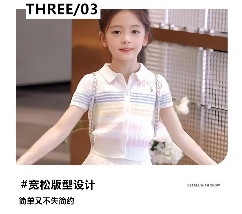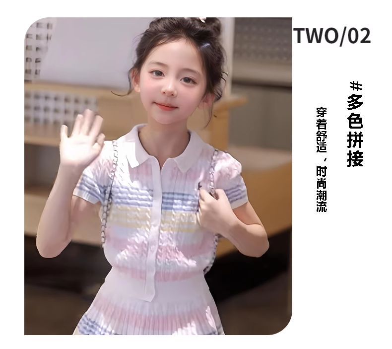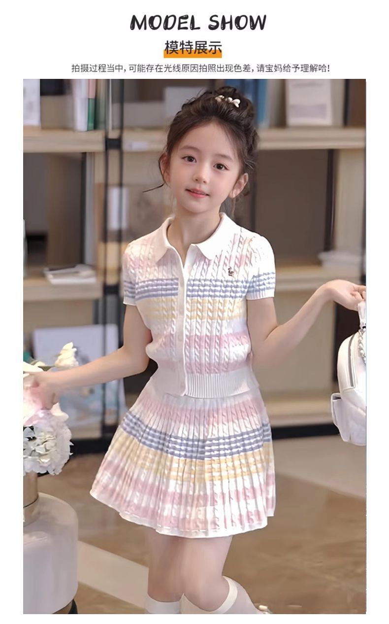 여자 여름 줄무늬 양복 새로운 어린이 얇은 반팔 스웨터 여름 여자 스커트 투피스 유행 세트