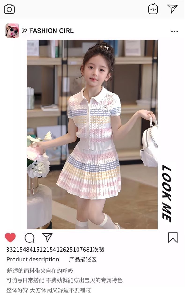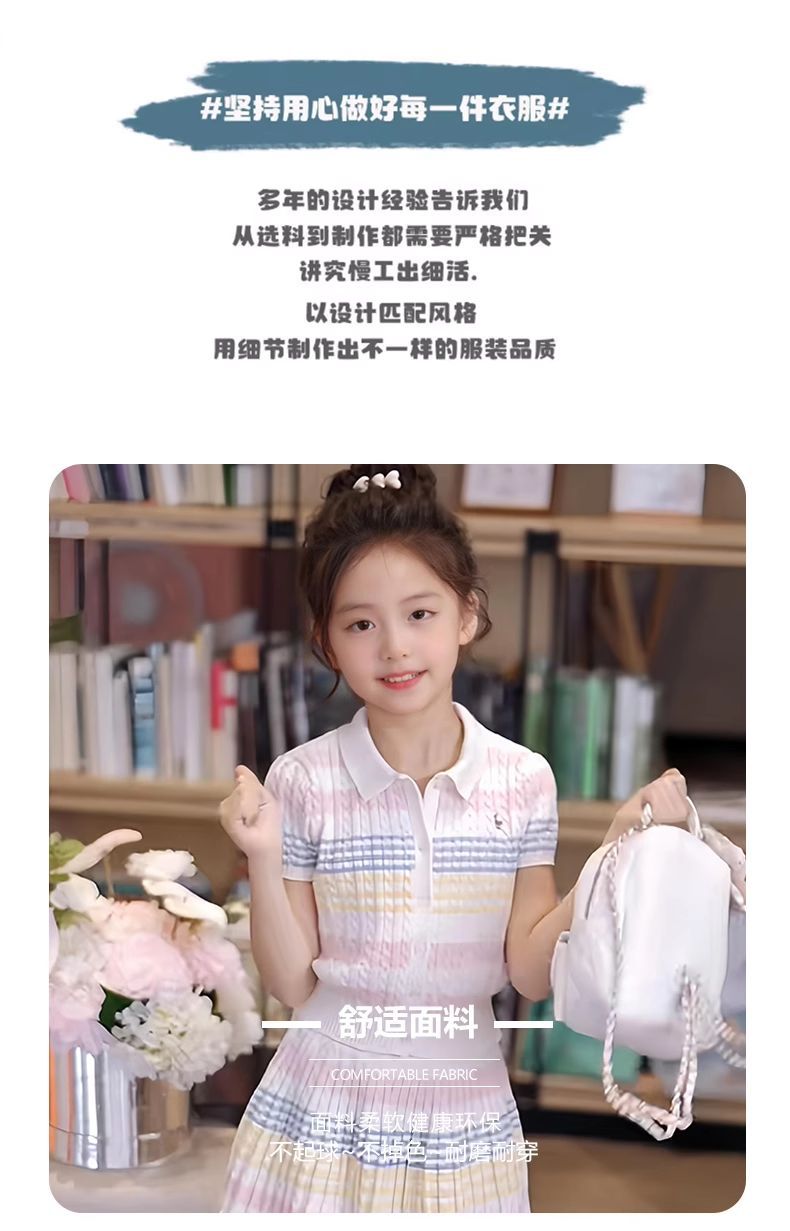 여자 여름 줄무늬 양복 새로운 어린이 얇은 반팔 스웨터 여름 여자 스커트 투피스 유행 세트스토어 가기