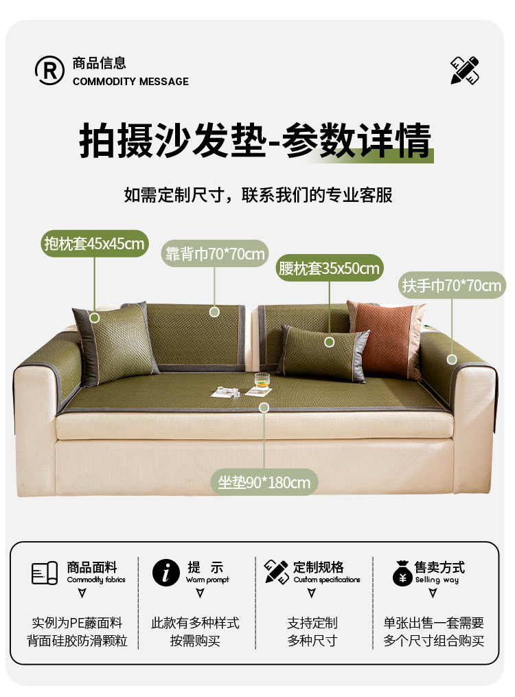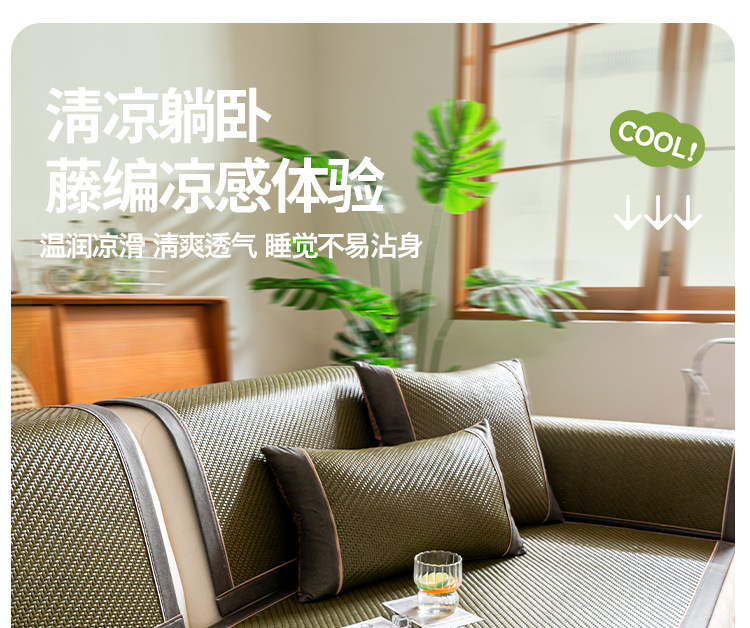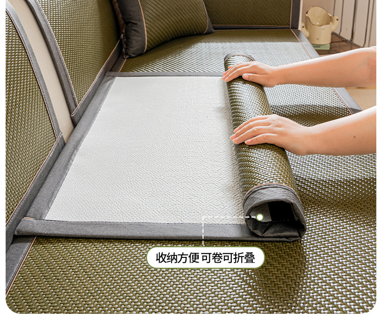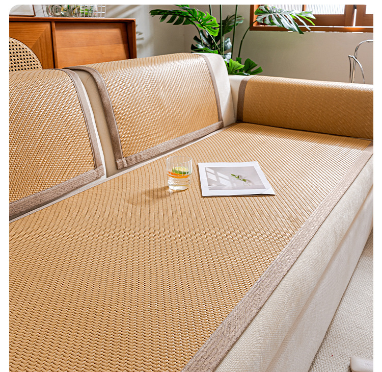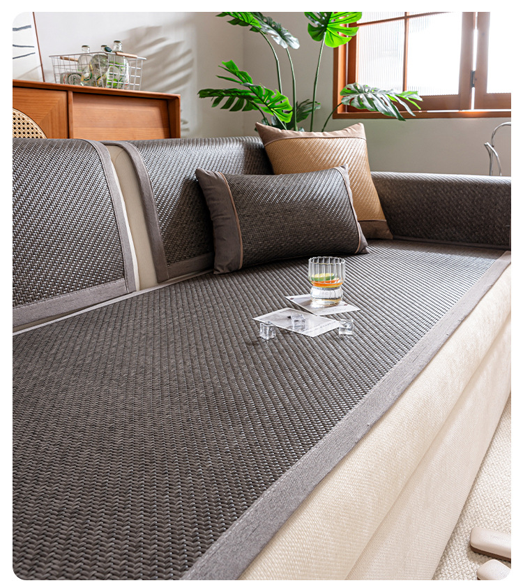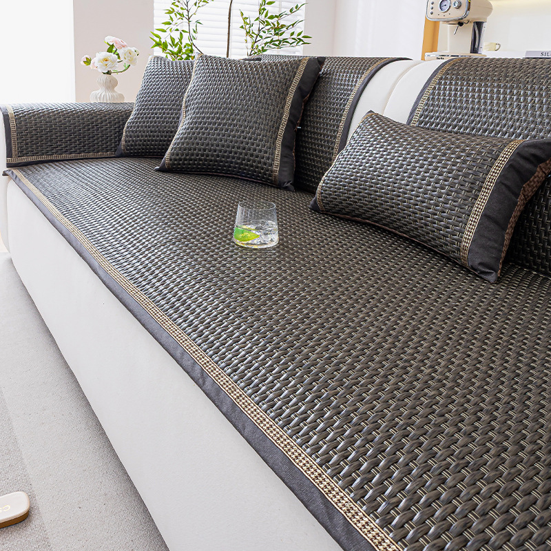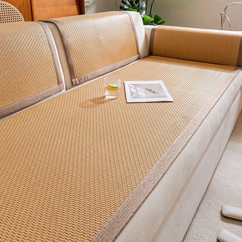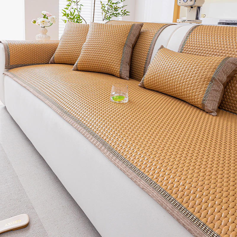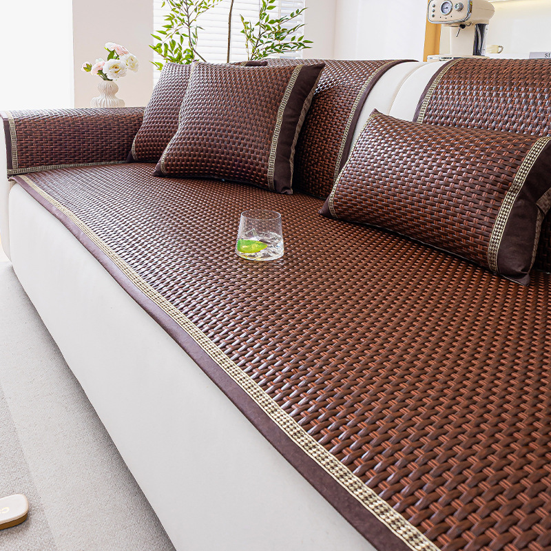 소파 쿠션 여름 시즌 매트 아이스 실크 대나무 등나무 매트 쿠션 고정 미끄럼 방지 스트레이트 가죽 소파 커버 도매스토어 가기