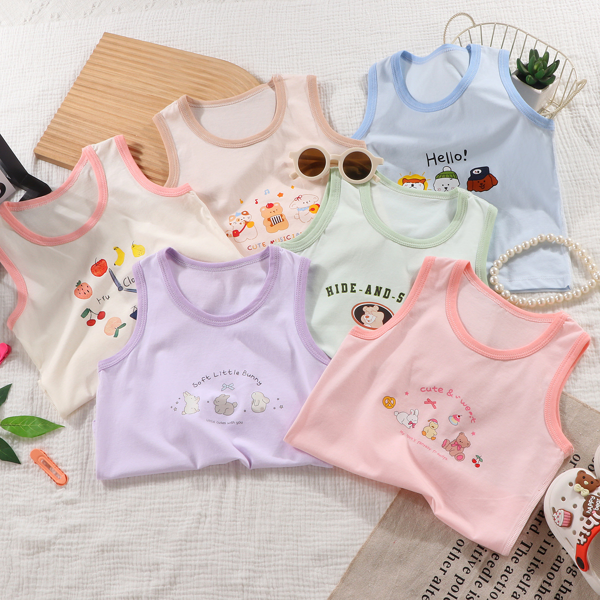 아동용 조끼 순면 뼈없는 소년 소녀 겉옷 아기 여름 얇은 민소매 탑 여름 새 스타일스토어 가기