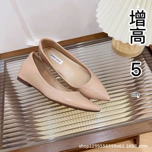 여성을 위한 프렌치 누드 컬러 이너 키높이 포인티드 토 플랫 슈즈 2025 여름 신상 펌프스 슈즈, 활용도 높은 통근화